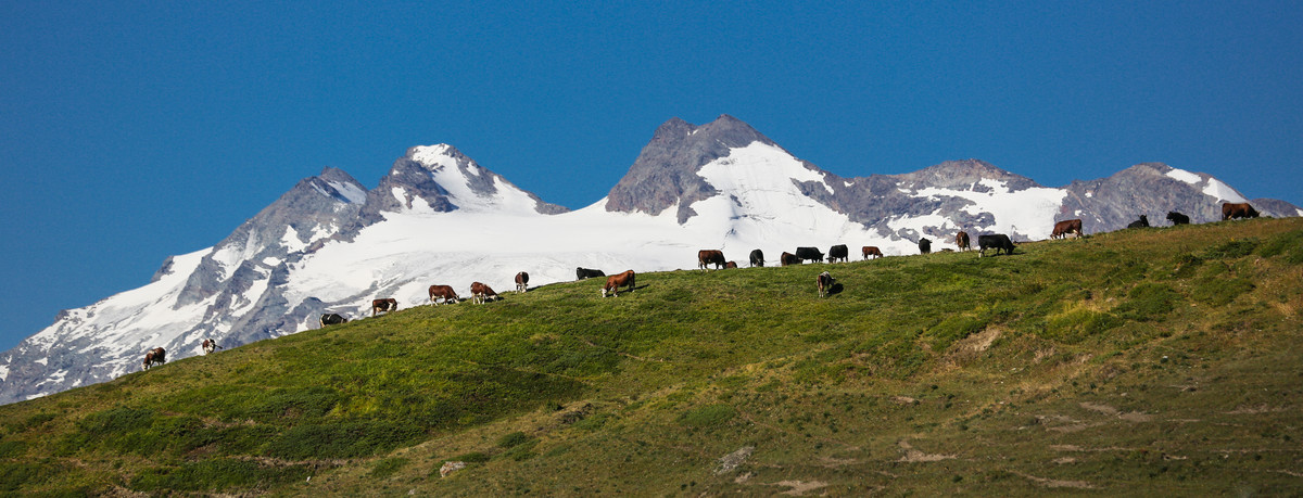 The first, visible from Aosta and from the mid central valley, takes its name from mont Château Blanc (3408 m) which dominates it, and is part of the Rutor ridge, a group of mountains that occupies an area of about 50 square kilometres within the Valley of La Thuile or the “Little Saint Bernard” (Piccolo San Bernardo), the Valgrisenche and the Val d’Isère, in France.