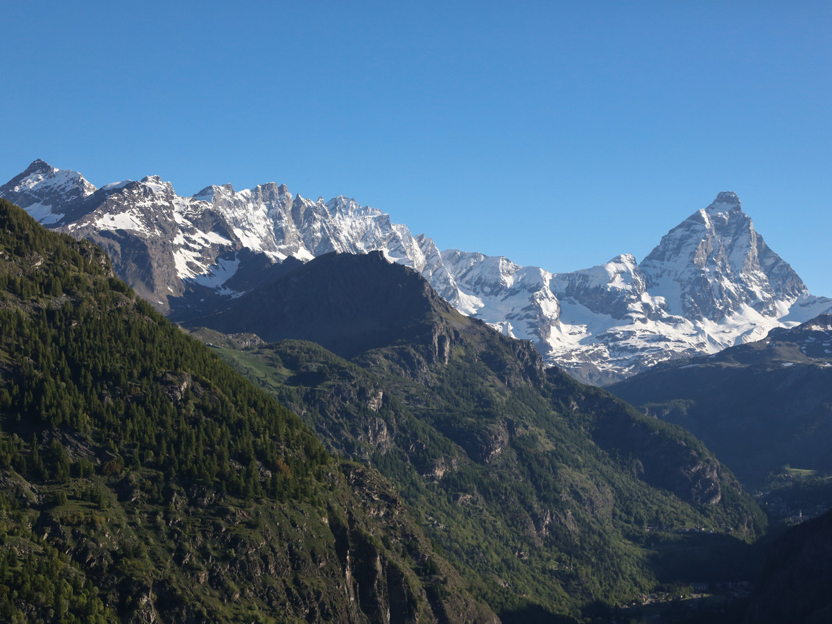 it has four faces which face the four compass points: the north face overlooks Zermatt in Switzerland, the west face, the Gorner glacier, the south face towers over Breuil-Cervinia in Italy and the east faces Dent d’Hérens.