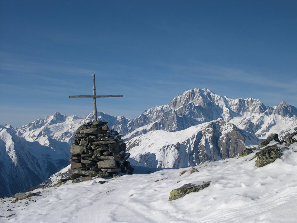 Huge glaciers descend from the massif, dropping from 4,000 metres down to 1,300–1,400 metres, with lengths reaching 20 km. On the Italian side, the Aiguille Noire de Peuterey (3,773 m) stands out, an elegant spire along whose ridge runs one of the most famous and demanding climbing routes: the Peuterey Ridge, leading to the summit over a 6 km stretch.