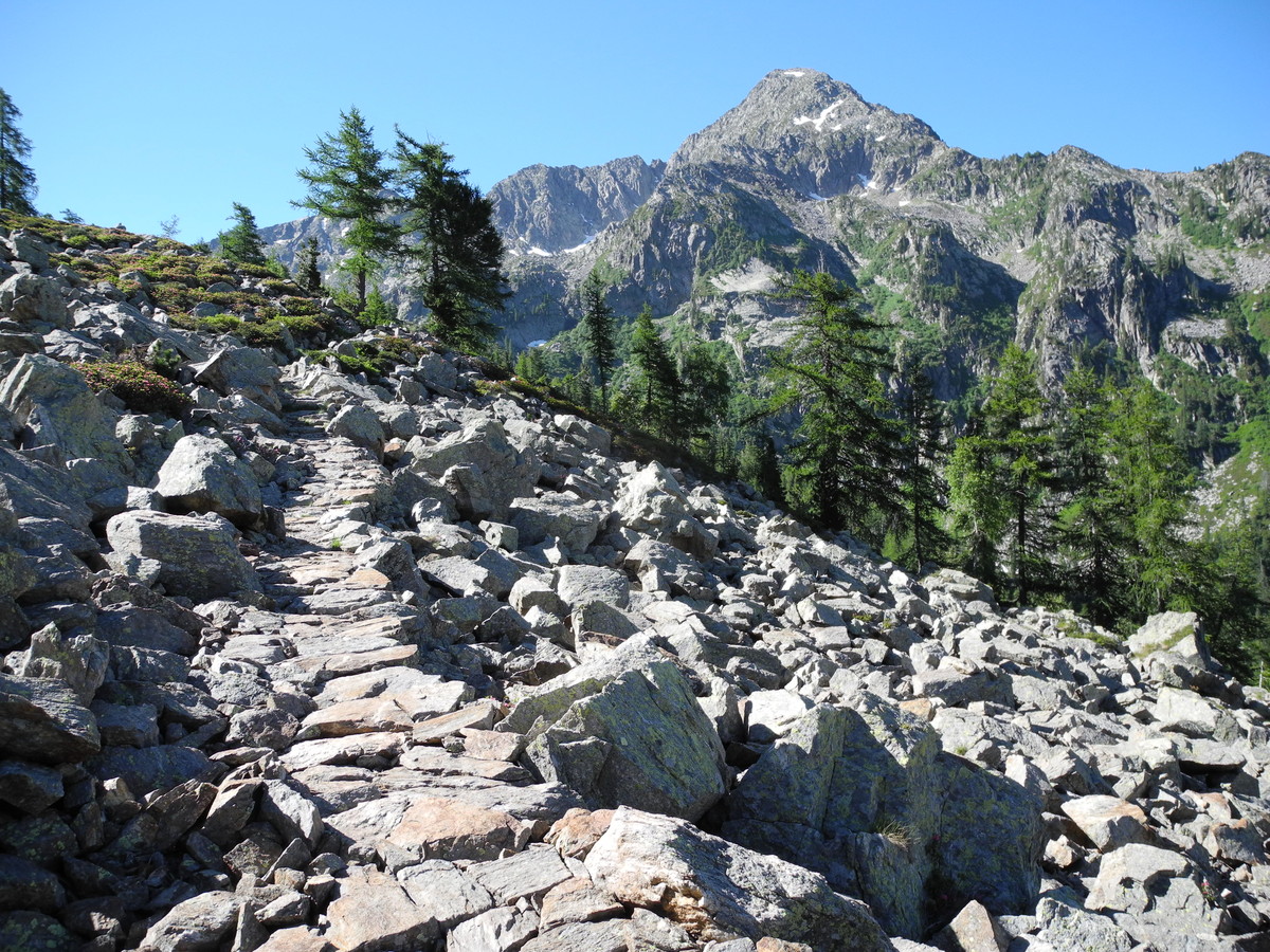 From Farettaz the path climbs steeply and crosses small villages with characteristic “rascard”, barns with particular mushroom-shaped supports which were used to keep rodents away.