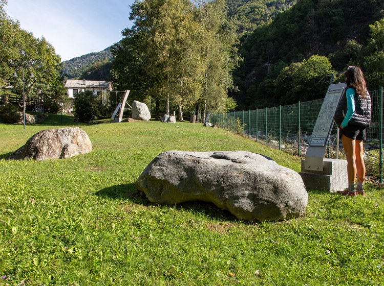 The feature, which is a didactic trail amid large rocky masses that illustrate the main geological events which took place in the Lys Valley, has both recreational and educational functions, making it suitable for adult visitors and children alike. The sequence of rocks accompanies visitors along a journey in the imagination which, from the Valley of the Dora Baltea river goes as far as the Monte Rosa massif. The lithologies shown belong the the geological systems of the Vallaise: Austrian-Alpine system, Piedmont area, Pennidic system. The masses, of which there are a dozen gathered together in stations, mainly come from detritus deposits, stone quarries, stone landfills and banks of river beds. They come in different sizes (on average volumes in the range of 1 cubic metre) and curious rounded or smoothed shapes due to the fluvial or glacial action or sharp edges, deriving from the quarry extraction or collapses.