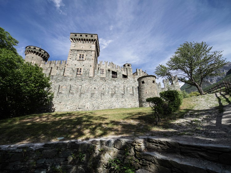 The castle’s many towers, which display surprising architectural harmony, were added by Aimone of Challant towards the middle of the 14th century to the existing turret, which had already been the residence of Viscount Gottfried II in the previous century. The castle belonged to the Fénis branch of the lords of Challant until 1716, when it was sold to Count Baldassarre Castellar of Saluzzo Paesana. There followed a period in which the castle’s prestigious function was dropped and it was turned into a rural dwelling: the ground-floor rooms were turned into stables, while the first floor was used a barn. It was purchased by Alfredo d’Andrade in 1895, who started restoration works that were completed by Mesturino. Today the castle is owned by the Regional Council.