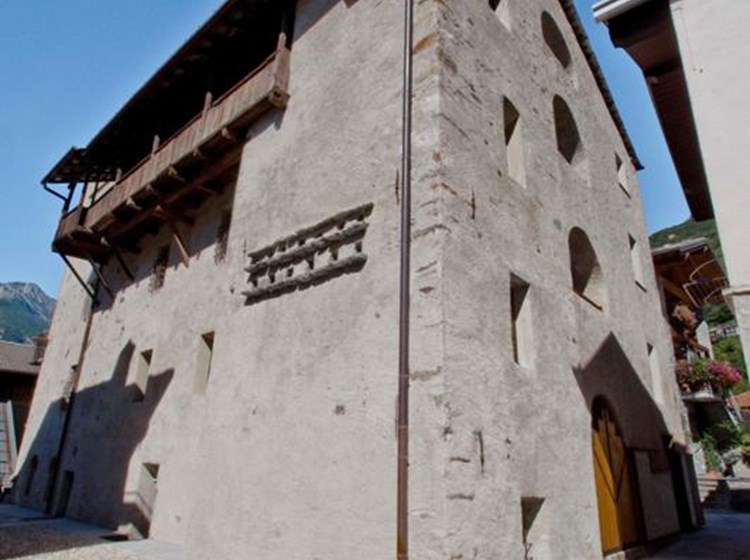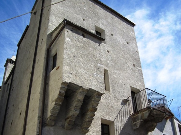 On the south-west side there is a projecting body that rests on superimposed shelves of squared stone. To the north-west, towards via Castello, the original wall structure is clearly visible, made of stones and lime mortar; at the top a characteristic fireplace stands out. On the north-east side are the entrance and the stairwell which leads to the mezzanine and the two raised floors. Various interesting elements also present the south-east side, which overlooks the internal courtyard: three windows with grating, a wooden balcony resting on a system of shelves, beams and lightning bolts and finally the dovecote.