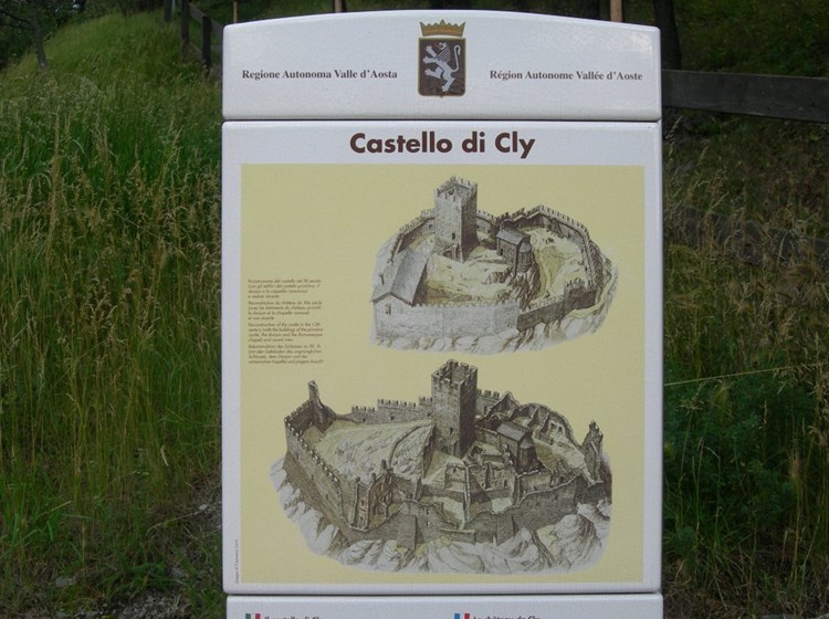 The castle belonged to Cly branch of the Challant family and was the legal seat of a vast estate that included the territories of Verrayes, Diémoz, Saint-Denis, Chambave, Antey, Torgnon, up to the entire area of Valtournenche. Following dramatic events it passed on to the House of Savoy who kept it until 1550. In the 17th century the building was purchased by the Barons Roncas who distmantled many materials for the construction of their palace in Chambave.