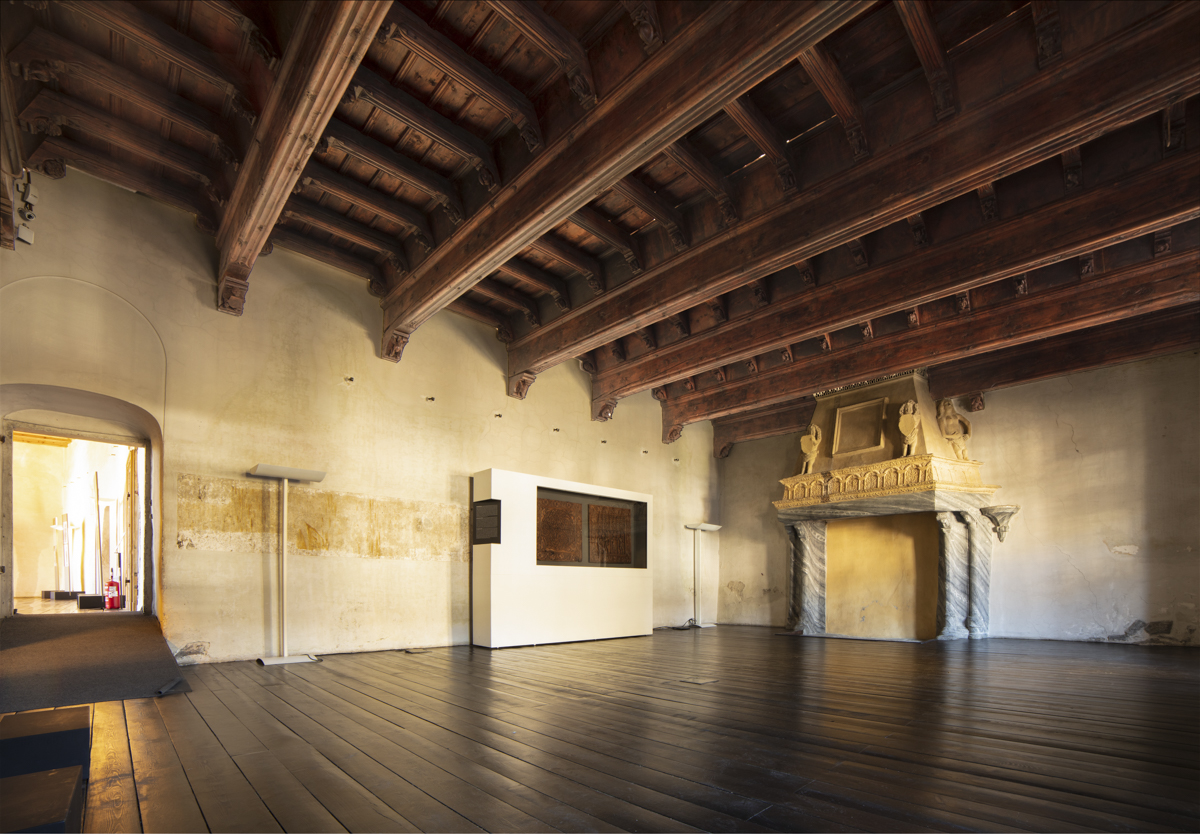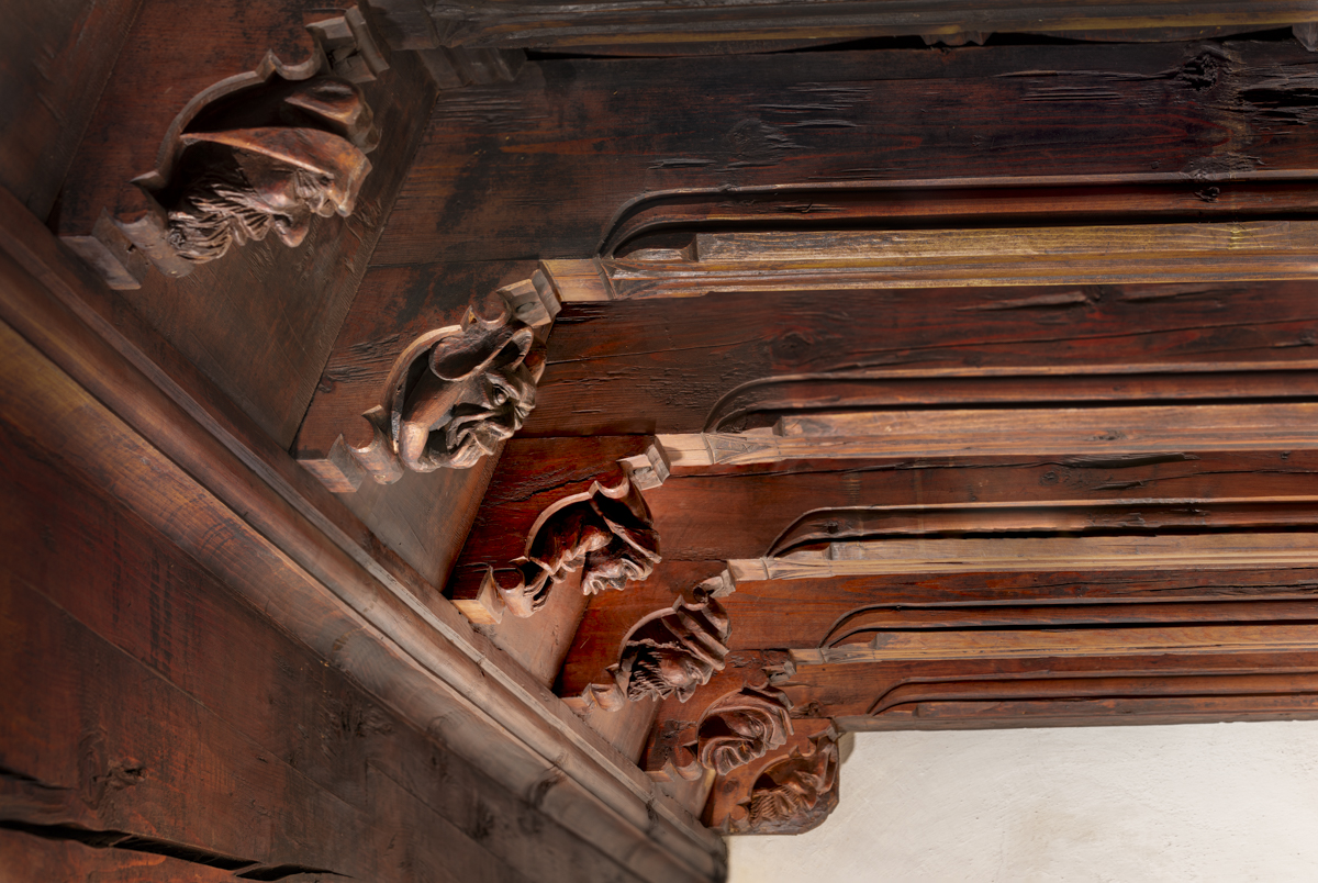 In 1420, Jean Sarriod built a castle in the location of the tower already known as the “turris Sariodorum” since the 14th century, as a place of reception, by adding a series of wings to the existing donjon. This included the building of the spiral staircase in the tower (viret) and the addition of cross windows in cut stone, which are characteristic of fifteenth century Valdostan architecture. In 1478 Jean’s son, Antoine Sarriod de la Tour, transformed the chapel dedicated to the Virgin Mary and Saint John the Evangelist, which is when the external frescoes of the Crucifix and Saint Christopher were painted and the small bell tower was built. On the ground floor of the north wing, there is a large wooden-ceilinged hall. On the first floor you find the so-called “hall of heads” which gets its name from the decorations on the wooden ceiling.