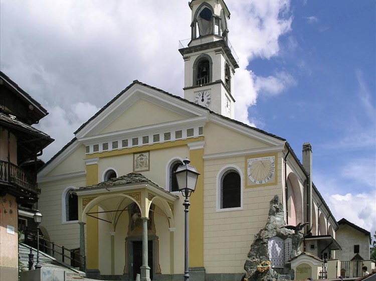 - Side altars: on the right, beginning from the entrance, the altar of St. Anselm and that of St. Joseph, from the 19th century, the altar of the Virgin, from the 17th century, reworked during the nineteenth century, with a statue of the Madonna of Oropa. On the left, at the entrance, the altar of St. Anthony and the altar of the Rosary, from the 19th century, the altar of the Most Blessed Trinity, from the 17th century, re-worked during the nineteenth century. The canvas by the painter Curtax of Gressoney is from this era, it shows the Trinity and the Holy Family.