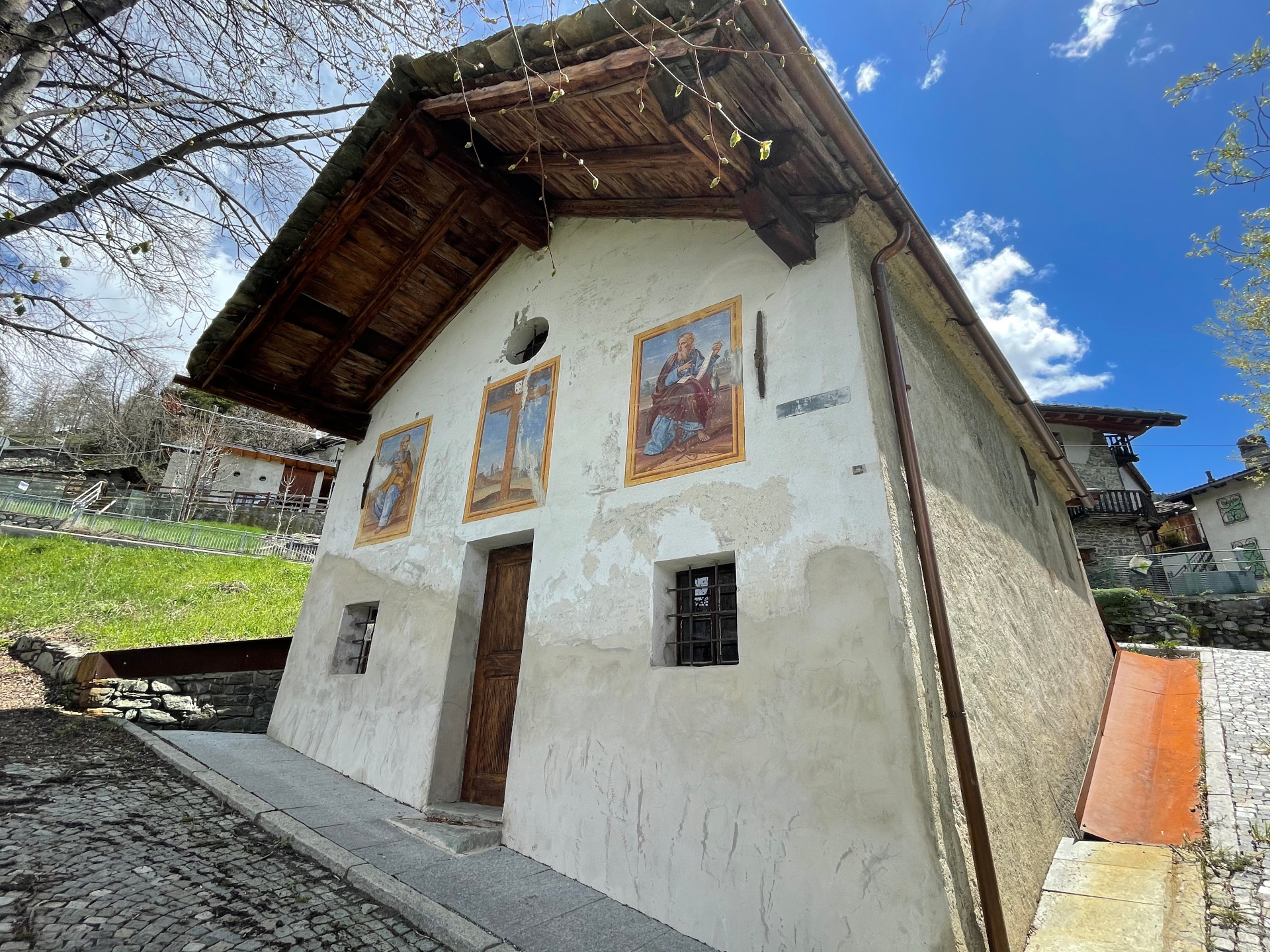 Dating from 1716. The facade hosts frescoes depicting St. Peter, St. Andrew and the Cross.