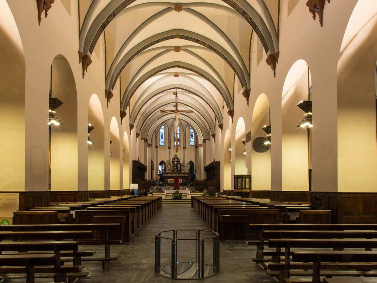 During the second half of the 11th century, the western body of the building was completely rebuilt, it consisted of two towers and an overhanging central apse, during the 13th century two of the five original apses were demolished and the ambulatory area was built, a ring-like corridor around the choir. Between the 15th century and the early years of the 16th century then, the bishops of Aosta planned a radical restoration intervention on the church and enriched it with numerous works of art. The upper choir, which was dominated by a wooden crucifix dating back to the 14th century, has two tiers of seating sculpted around 1460, on the floor there are two mosaics from the 12th and 14th century, representing the months of the year and a series of real and imaginative animals along with the rivers Tigris and Euphrates.