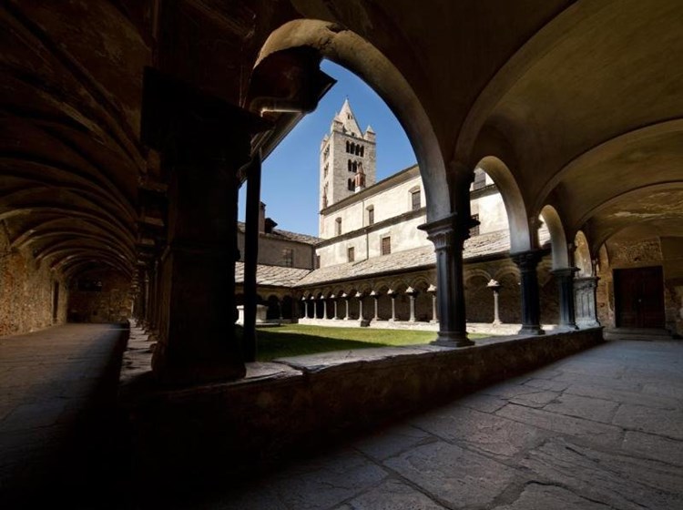 Striking is the Romanesque bell tower of Sant’Orso, which was born as a defensive tower belonging to the fortified wall which originally protected the village; to the east of the bell tower, the church of Saints Peter and Ursus stand, the late-gothic facade of which is distinguished due to the towering terracotta wimperg and top pinnacles. The inside of the church, characterized by a rich liturgical equipment, is particularly appreciated for the Romanesque crypt (beginning of the 11th century) below the beautiful wooden choir of the presbytery, where it is said that Saint Ursus or Sant’Orso was buried (who lived in 8th century AD). Also particularly valuable is the cycle of Ottonian frescoes of the loft (10th – 11th century), (guided tour for a fee to see the frescoes and the chapel of the Priory).