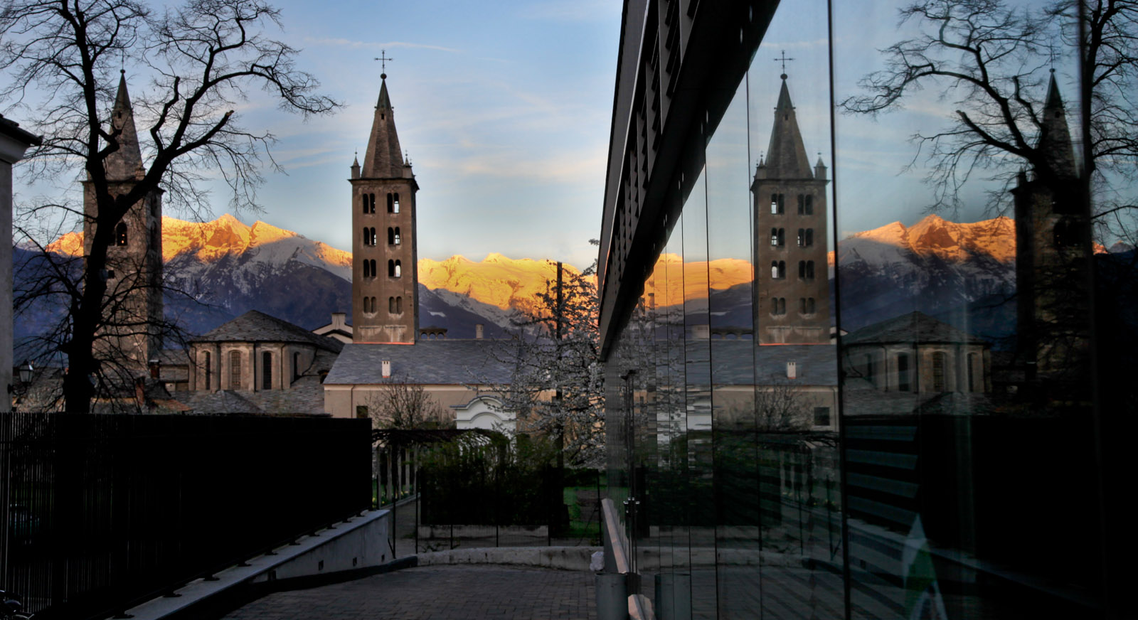 The route departs from the ancient heart of the city: the Praetorian Gate, on the north side of which stands the imposing Torre dei Signori of the Porta Sant’Orso which indicates the entrance into the medieval Village of Sant’Orso. From here, take Via Sant’Anselmo and, after a few metres, turn left in the direction of “Collegiate Church of the Saints Pietro and Orso”:/en/database/8/churches-and-sanctuaries/aosta/collegiate-church-and-cloister-of-sant-orso/720; a place brimming with history and mysticism, the church has its origins in the Paleochristian age and has always represented a symbol of Aosta Valley religion. A funerary church preferred for centuries by powerful nobilities, Sant’Orso contains real treasures of Christian archaeology and art history. The famous Magic square can also be found here: an elegant square mosaic rug dating back to the 11th – 12th century and brought back to light by archaeological digs conducted in 1999, still considered full of mystery. The church also contains another treasure: the magnificent cycle of frescoes in the loft, dating back to the Ottonian age (beginning of 11th century AD) which remained hidden for centuries following the construction of a false ceiling at the end of the 15th century. Next to the church is the wonderful Romanesque cloister which, with its 40 stained marble capitals, draws crowds of students and visitors each year.
