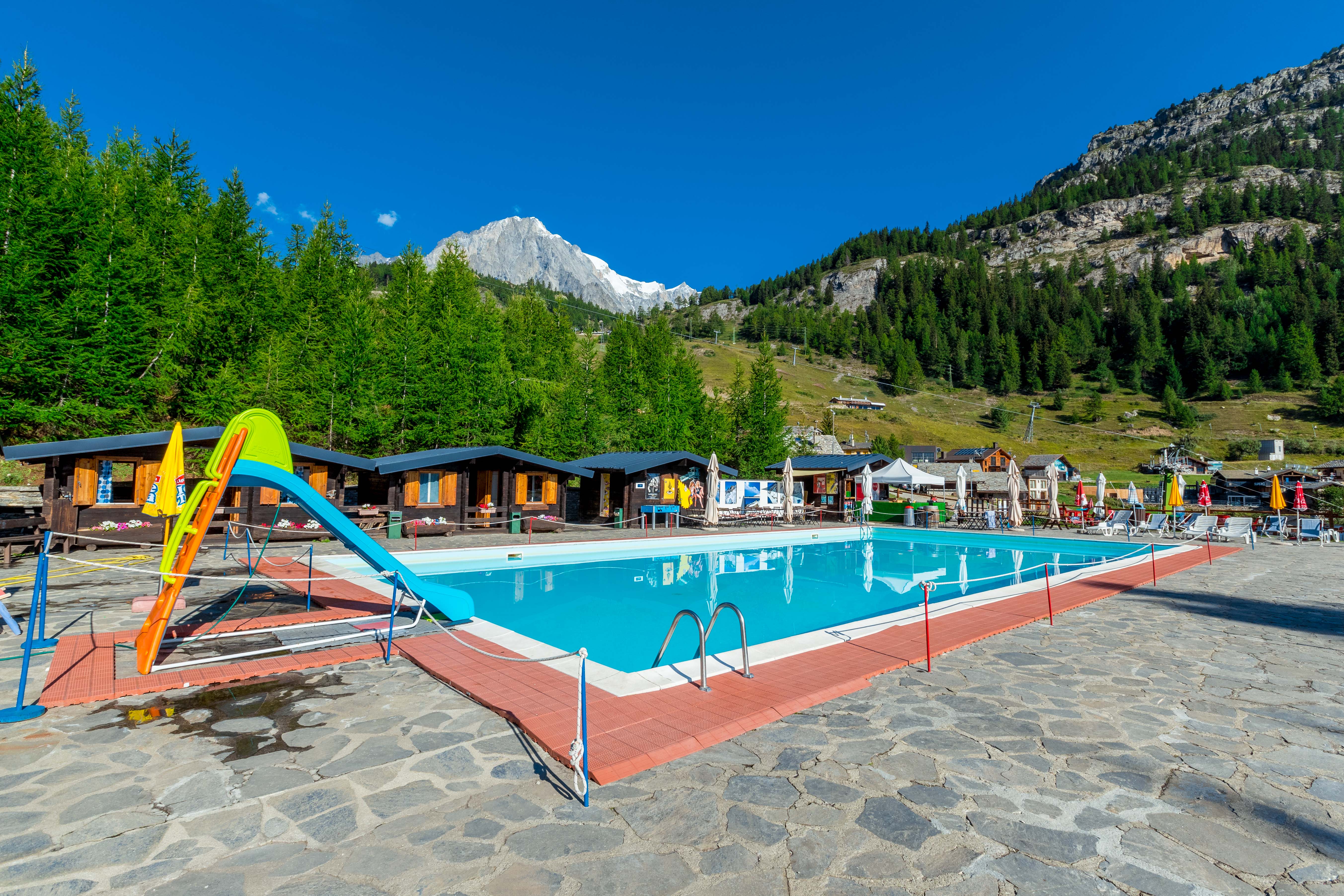 In Courmayeur, during the Summer months, it is possible to escape the heat for a dip at high altitude with a view of Mont Blanc!