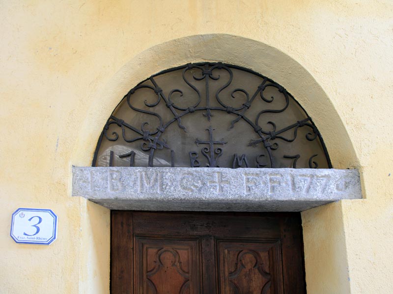 Les façades des maisons du bourg, ornées de grands portails d’entrée, donnent sur la rue principale ; ils s’ouvrent sur des cours intérieures ou sur un long couloir avec des cages d’escalier, qui offrent un accès couvert à tous les étages des grandes maisons en pierre, autrefois dotées d’écuries et de granges. La date de construction et les initiales des maîtres d’œuvres sont gravées sur les linteaux ou forgées sur les portails en fer forgé.