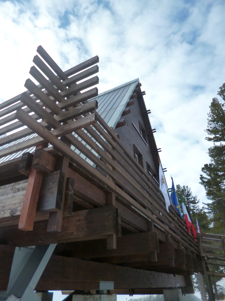 Inaugurée en décembre 2014, la Casa Capriata est une structure tout à fait originale, aménagée sur trois étages et surélevée par rapport au sol, une réinterprétation moderne des architectures Walser de la haute-vallée de Gressoney. L’édifice fut conçu en 1954 par l’architecte Carlo Mollino, originaire de Turin et a été achevé 60 ans après grâce à un groupe de chercheurs de l’École polytechnique de Turin.
