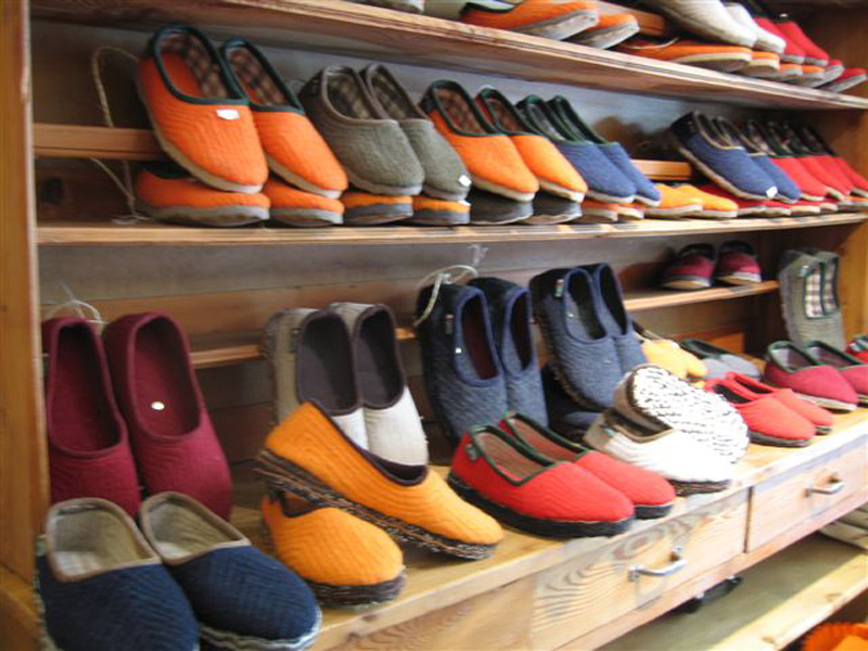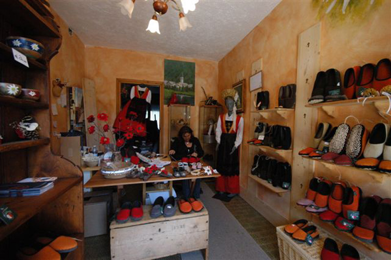 “D’Socka” sont des pantoufles en tissu très chaudes et confortables, qui étaient patiemment fabriquées par les femmes pendant les longues journées d’hiver. La coopérative “D’Socka” conserve et transmet cette antique tradition, en produisant ces chaussures traditionnelles, qui sont encore très utilisées par les habitants de cette vallée.