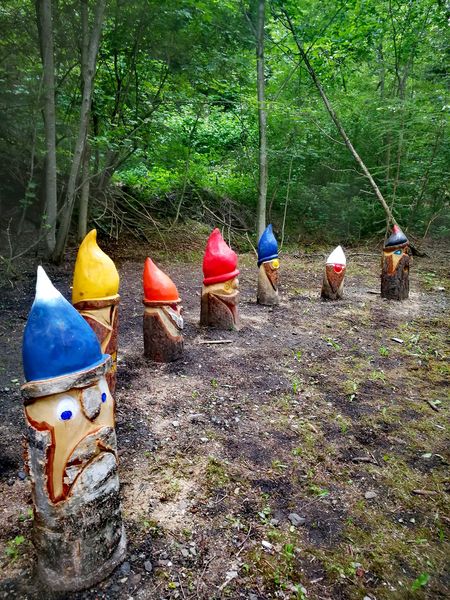 Vous rencontrerez des gnomes, des champignons mais aussi un arbre retentissant, un labyrinthe littéraire et une cible particulière. Les œuvres ont été sculptées par l'artiste Eliseo Lumignon.