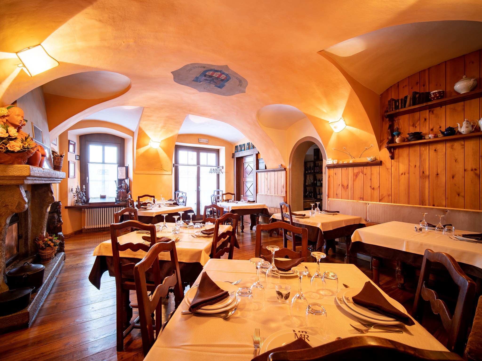 Les salles à manger de la Maison Rosset se trouvent au rez-de-chaussée du bâtiment principal, autrefois maison de maître. Pendant le XVIIIe et le XIXe siècle, on les utilisait comme cantines pour les ouvriers de l’exploitation. Les travaux de rénovation ont conservé, intactes, les caractéristiques architecturales de l’époque. Planchers en bois, plafonds voûtés, une cheminée toujours allumée.