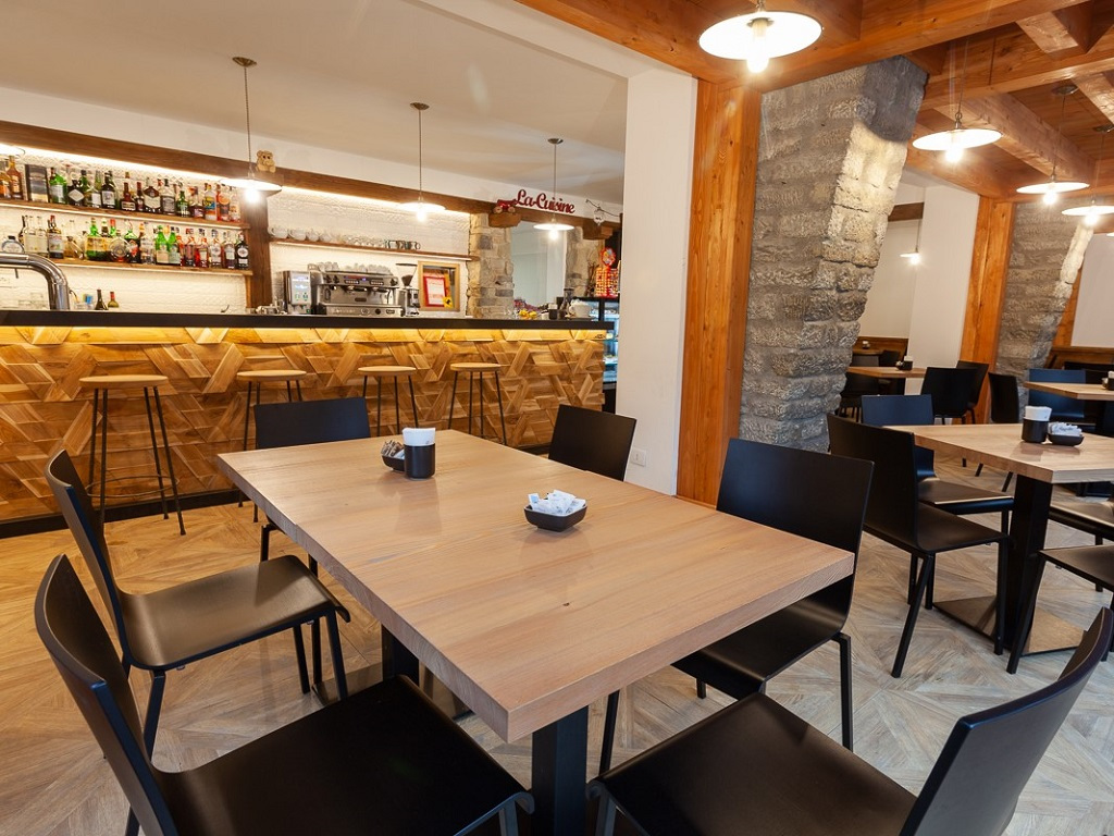 Bar, cafétéria; petite cuisine ouverte à midi avec plat du jour.