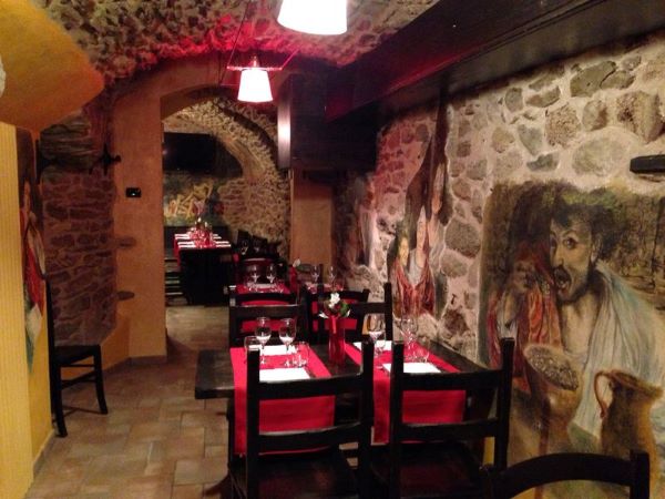 "Hostaria del Calvino" se développe sur trois étages : Restaurant à l’étage supérieur, bar à vin au niveau de la rue et une taverne typique avec ses voûtes en pierre utilisée comme pizzeria à l’étage inférieur.