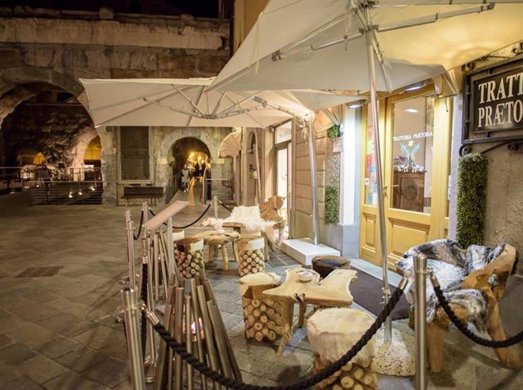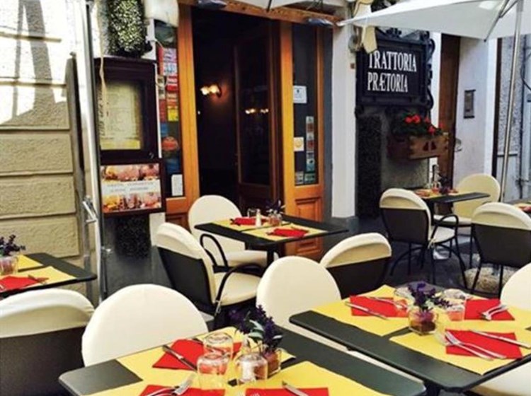 "Trattoria Praetoria" se situe au coeur d’Aoste, dans la rue Saint-Anselme, dans la zone piétonne qui va de l’Arc d’Auguste à la Porta Praetoria, pas loin du Théâtre romain. On y trouve une ambiance accueillante, rustique, mais en même temps moderne, où goûter les plats typiques de la tradition valdôtaine ainsi qu’un grand soin à la qualité des matières premières, sélectionnéés chaque jour parmi les producteurs locaux de fromages, de viandes et de vins de qualité, sans oublier une attention aux intolérances et aux allergies alimentaires.