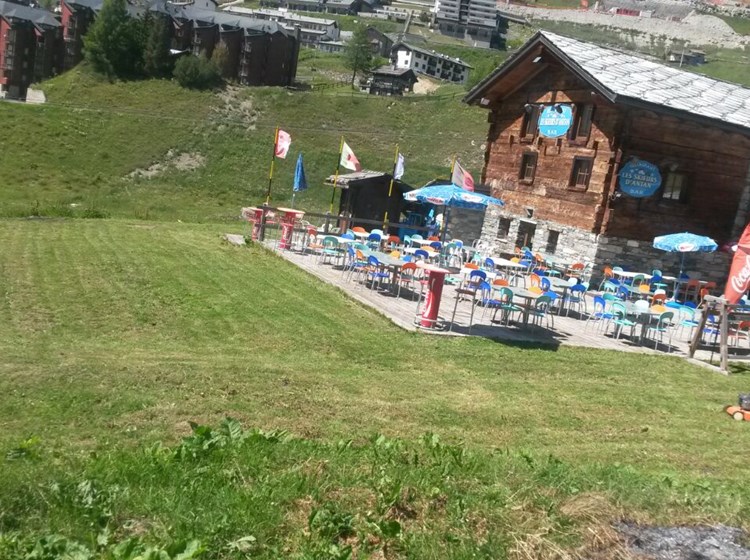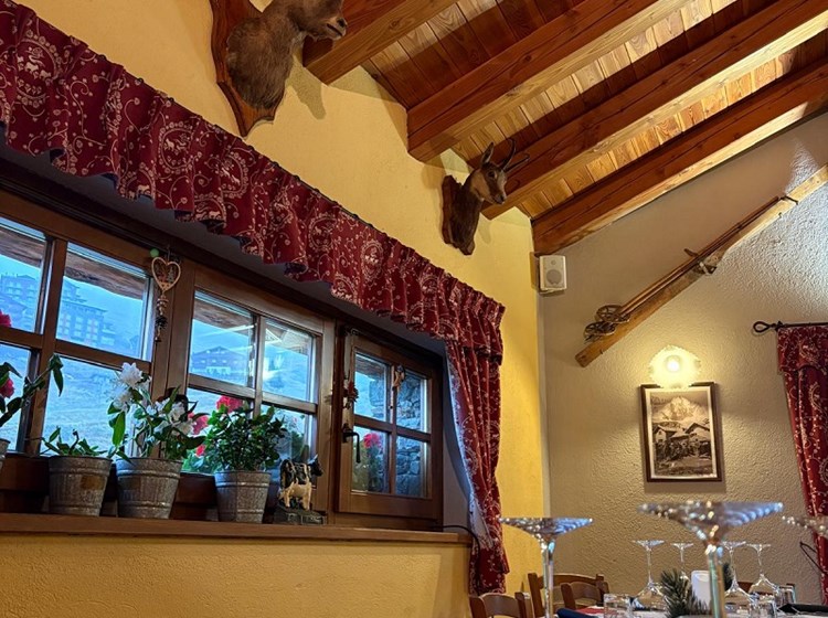 Un restaurant de montagne accueillant, niché au milieu de vert prés en été et à l'arrivée des pistes 3 bis, 34 et 7 « Ventina » en hiver.