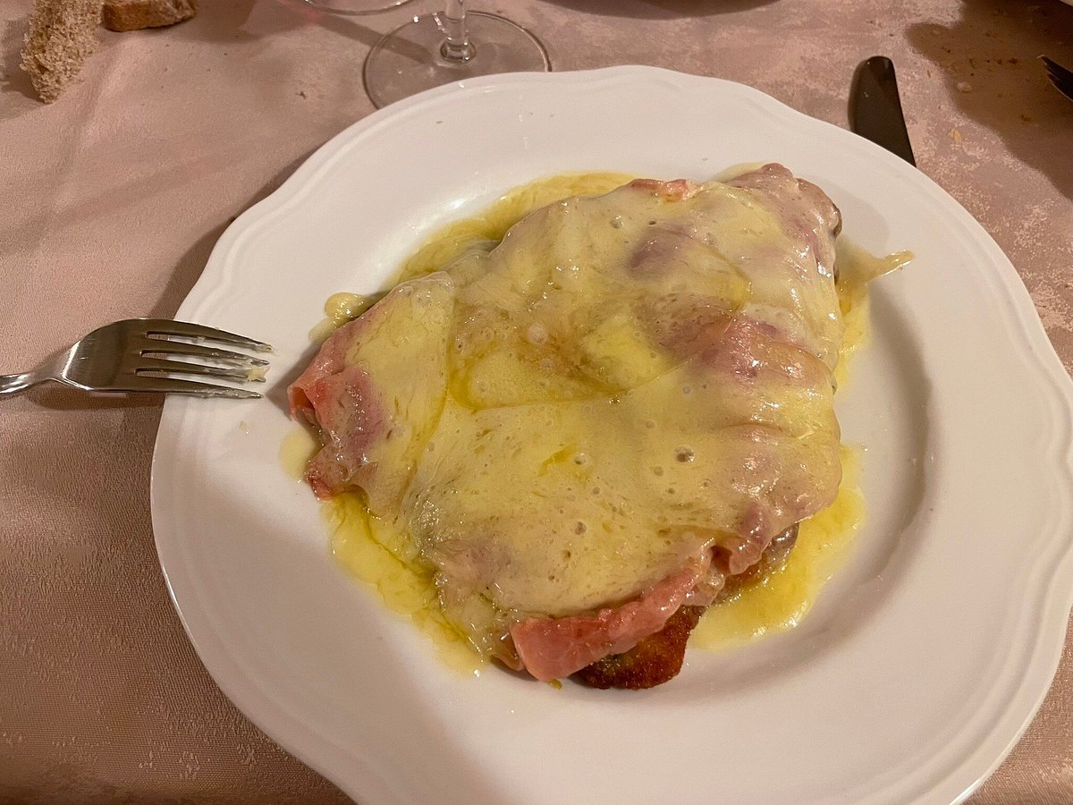 Polenta avec du fromage fondu et carbonade de viande ou gibier
