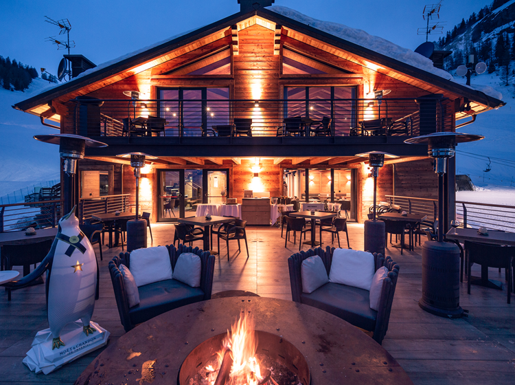 La Loge du Massif est un chalet sur les pistes à Plan Chécrouit à 1700 mètres d’altitude et est accessible par les remontées mécaniques. Il est un bijou en bois et pierre qui, avec ses amples terrasses donne sur le Roi des Alpes, au coeur des remontées mécaniques. Le restaurant est un endroit exclusif pour s’accorder un dîner spécial la nuit dans le charme du glacier.