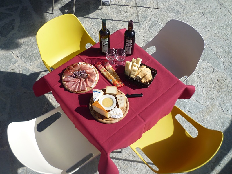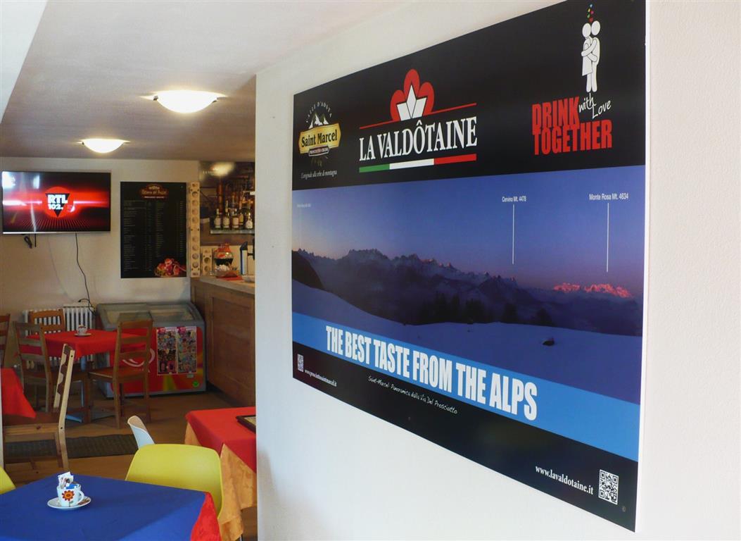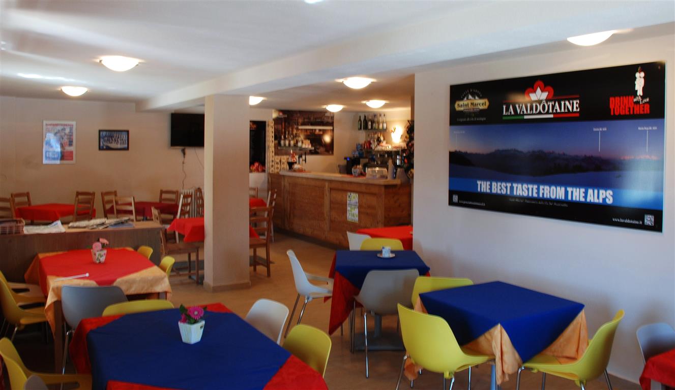 Le restaurant a une salle à manger panoramique où on sert des plats chauds, des sandwichs et des goûter typiques de la Vallée d’Aoste. La caractéristique principale de l’Osteria est la “Merenderia” avec le savoureux jambon cru de Saint Marcel étiquette noire (vieilli 18 mois). On peut aussi déguster des vins locaux et le génépi traditionnel en profitant du soleil sur la grande terrasse. Sur réservation, on organise des déjeuners ou des dîners pour des occasions spéciales.En hiver, grâce à son emplacement au départ des pistes de ski de fond et des itinéraires de raquettes et de ski alpinisme, il dispose d’un service de location de matériel de sport.