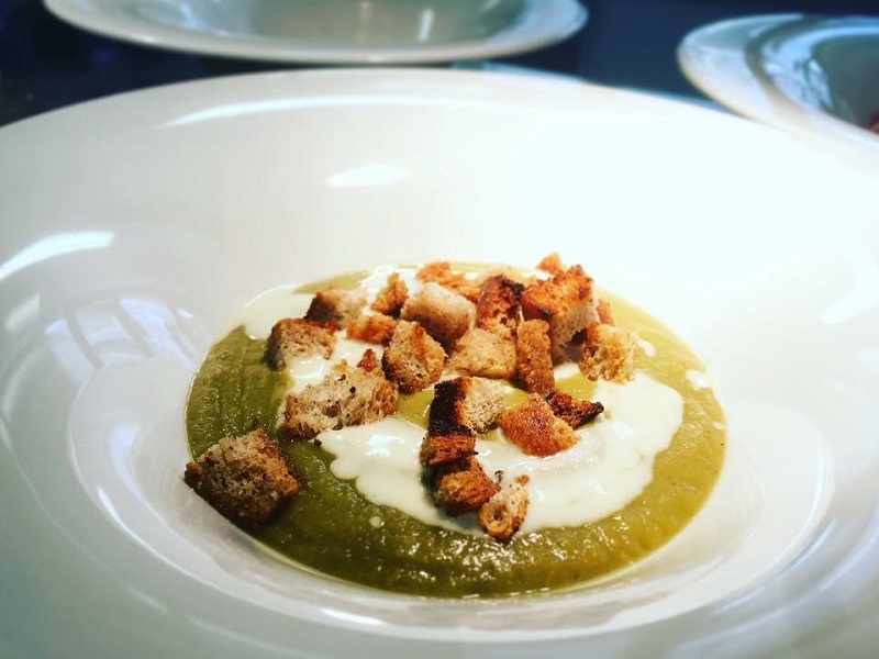 - Crème de chou de Savoie, pain complet au beurre et coulée de Fontina DOP;