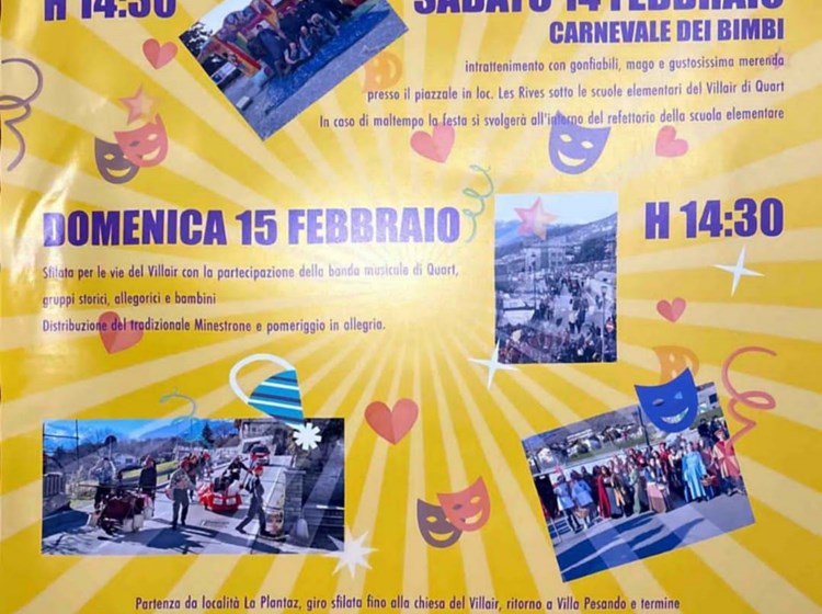 Départ de La Plantaz, défilé jusqu'à l'église de Villair, retour à Villa Pesando et fin du défilé sur la place des Rives.