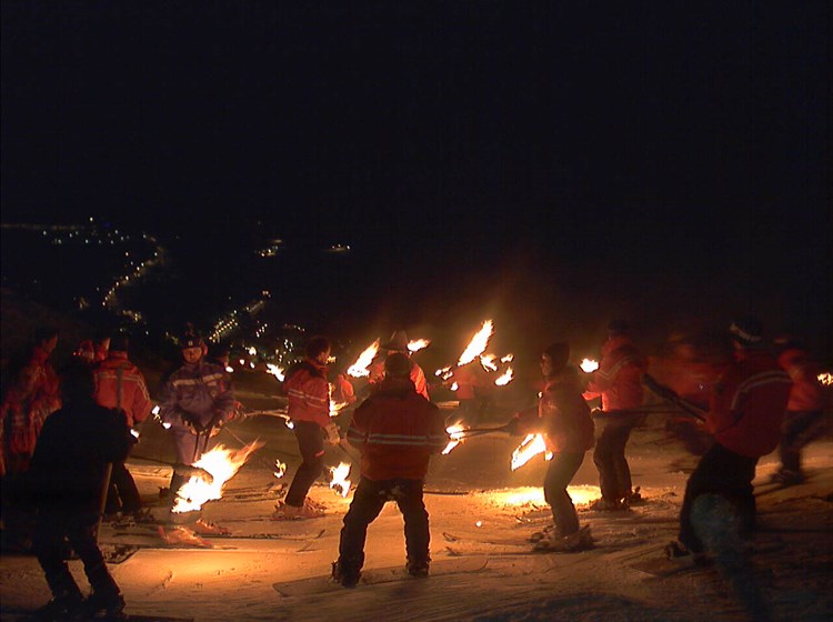 Retraite aux flambeaux traditionnelle des moniteurs des écoles de ski de Breuil-Cervinia et Valtournenche et des guides alpins du Cervin.