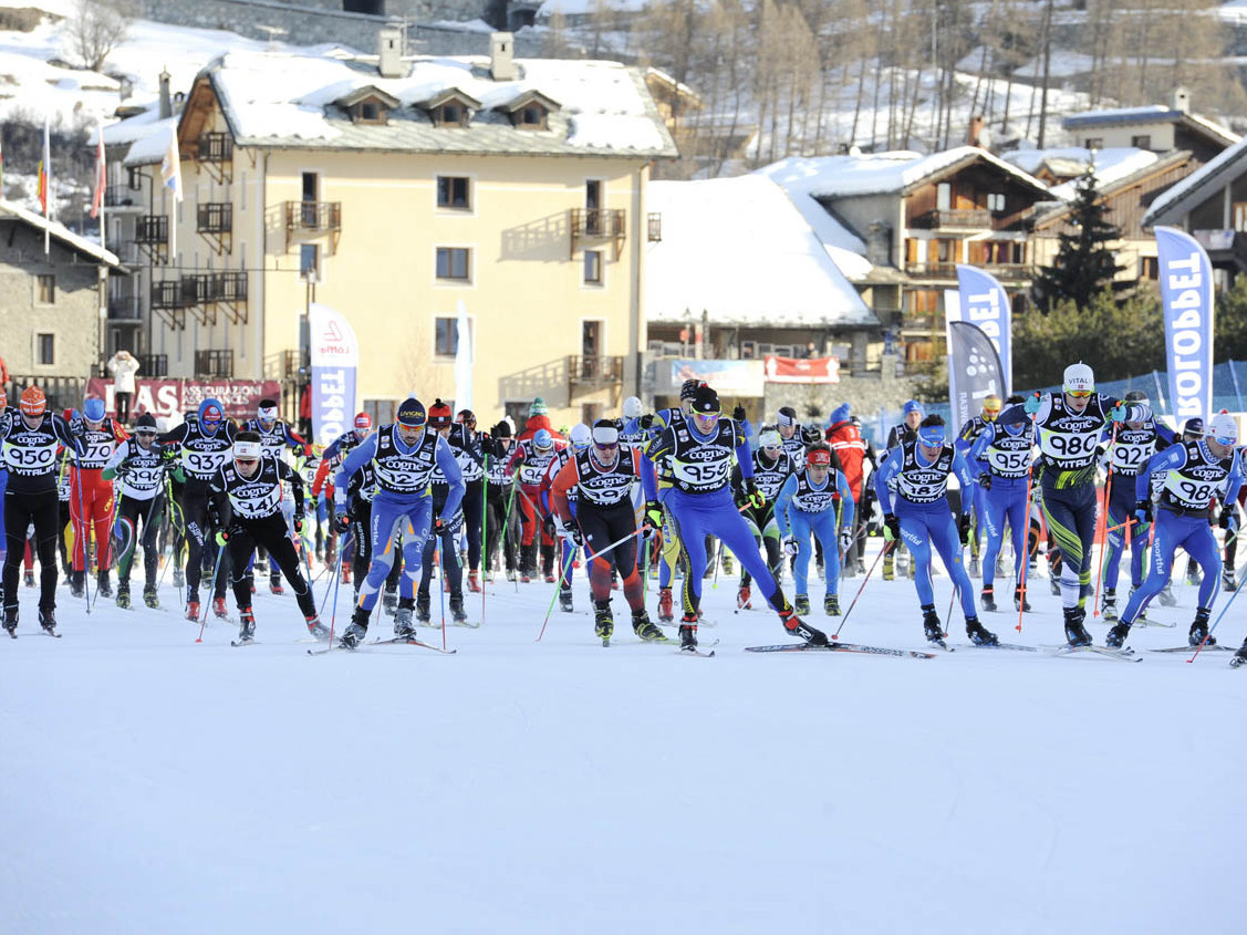 Du pré de Saint-Ours de Cogne le long serpent multicolore des participants à la marche s’allonge sur les 40 km du parcours de l’une des plus célèbres compétitions italiennes de ski nordique technique classique.