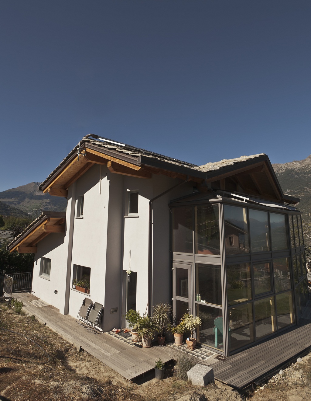C’est par choix que cette maison a été construite en respectant autant que possible les critères de construction durable, c’est-à-dire en créant une maison plus saine et respectueuse de l’environnement. Pour l’architecture bio-écologique, un édifice est un organisme vivant qui occupe un espace, sans constituer une barrière entre l’intérieur et l’extérieur, et permet à l’homme de vivre en harmonie.