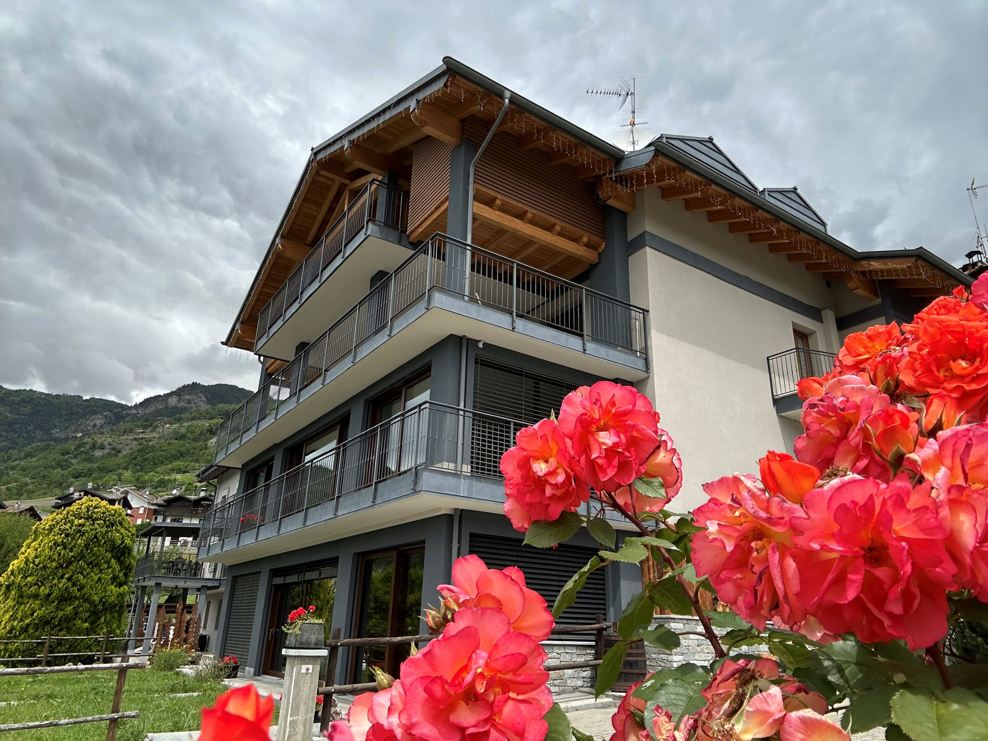 Pour un séjour sous le signe de la nature (magnifique vue sur les montagnes, de la Grivola au Glacier du Ruitor), de la tranquillité et du repos. Durant la belle saison, le parfum des fleurs embaumera la pièce une fois ouvertes les grandes baies vitrées.
