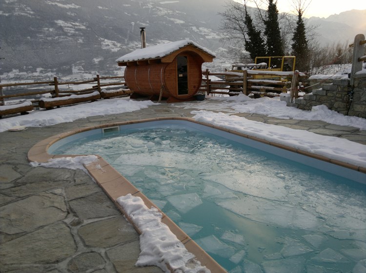 L’espace bien-être est composé d’une piscine extérieure, d’un Jacuzzi et d’un sauna original finlandais.