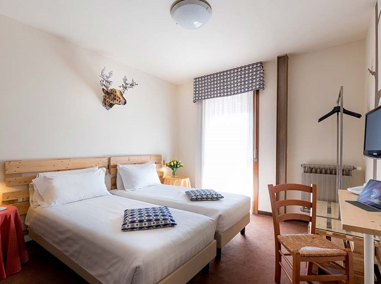 L'hôtel dispose de chambres doubles, simples et triples, dont deux communicantes, solution idéale pour les familles avec enfants. Toutes les chambres sont décorées agréablement. Les chambres en façade sont dotées d'un petit balcon, alors que les autres, plus tranquilles, jouissent d'un aperçu du panorama sur les environs. Après un petit déjeuner abondant, un buffet, servi dans notre salle des petits déjeuners ou dans la chambre, les hôtes peuvent se reposer et profiter aisément du soleil sur la grande terrasse solarium.