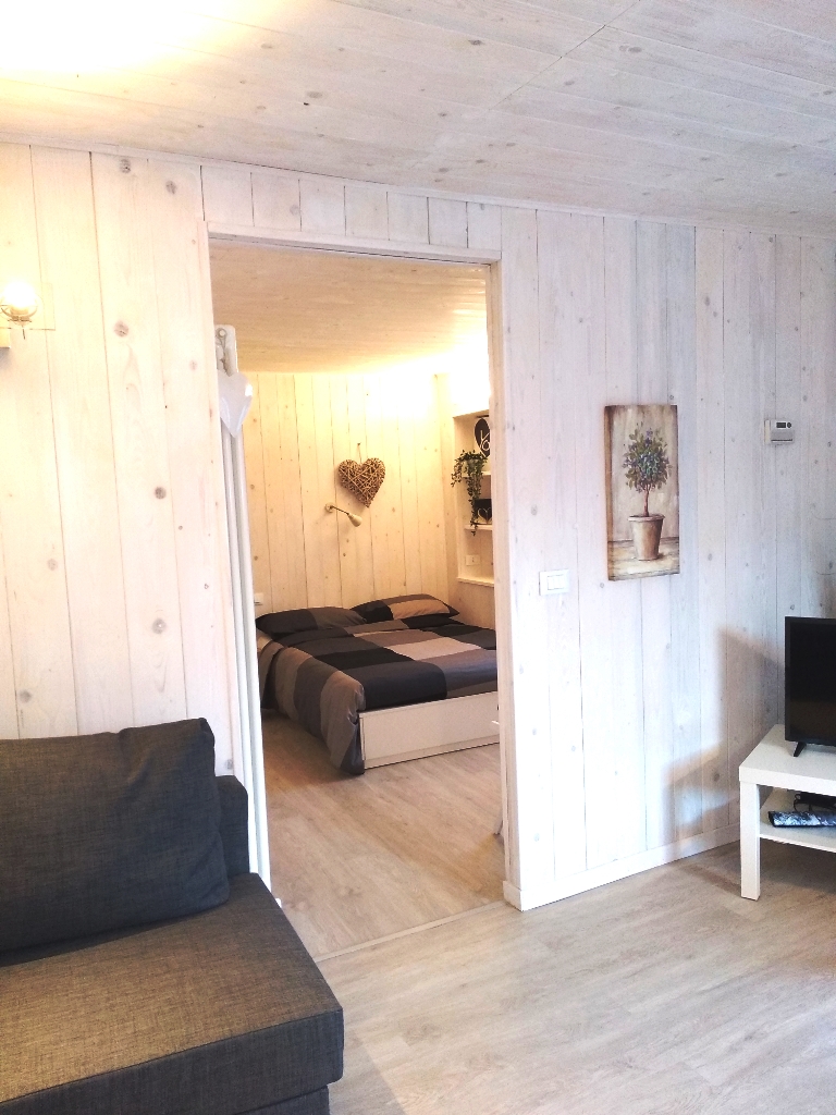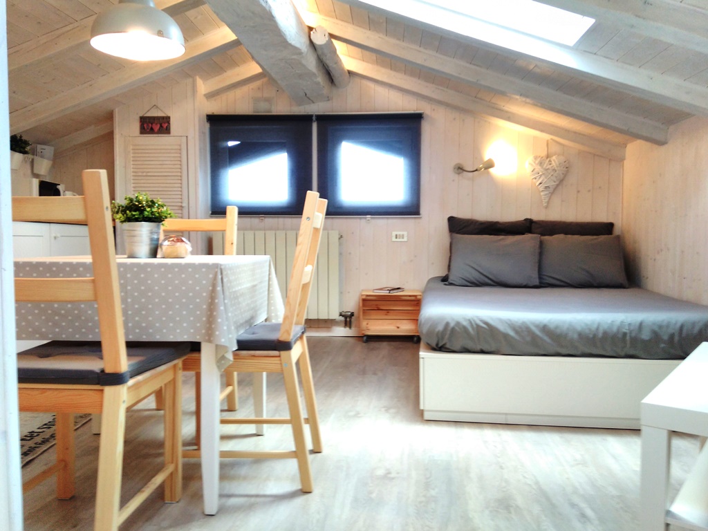 Le petit loft est une mansarde chaleureuse et confortable qui donne sur les jardins Deffeyes, poumon d’Aoste.