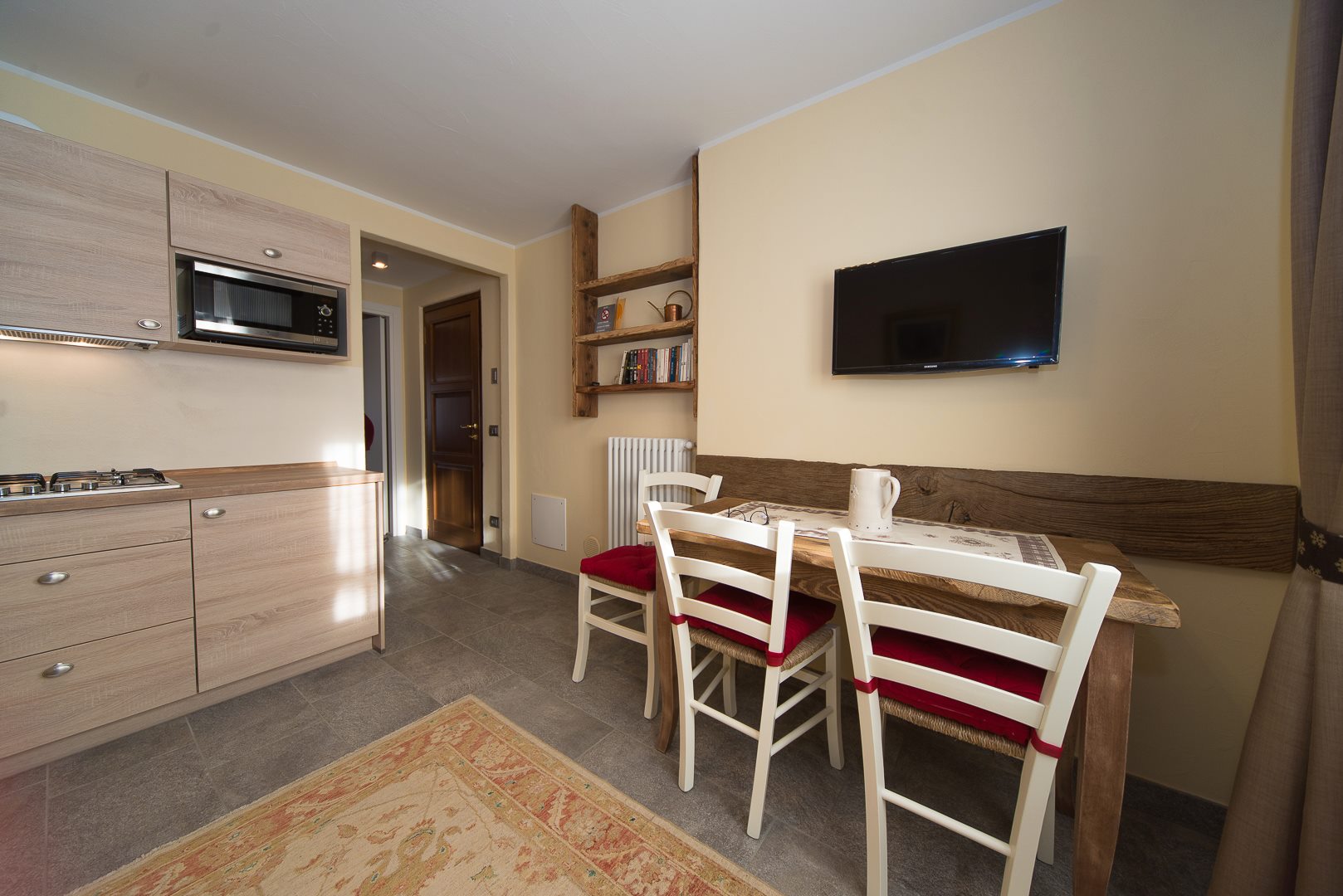 Les appartements (7) sont aménagés dans un édifice rénové sur deux étages, en style montagnard.