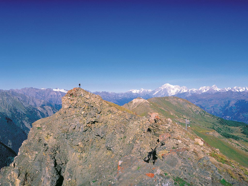 Beauté, parce Pila, en plus de dominer la ville d’Aoste à partir de la hauteur de ses 1800 mètres, bénéficie d’une vue qui comprend les plus hautes montagnes des Alpes, du Mont Blanc au Grand Combin, de Mont Cervin au Mont Rose.