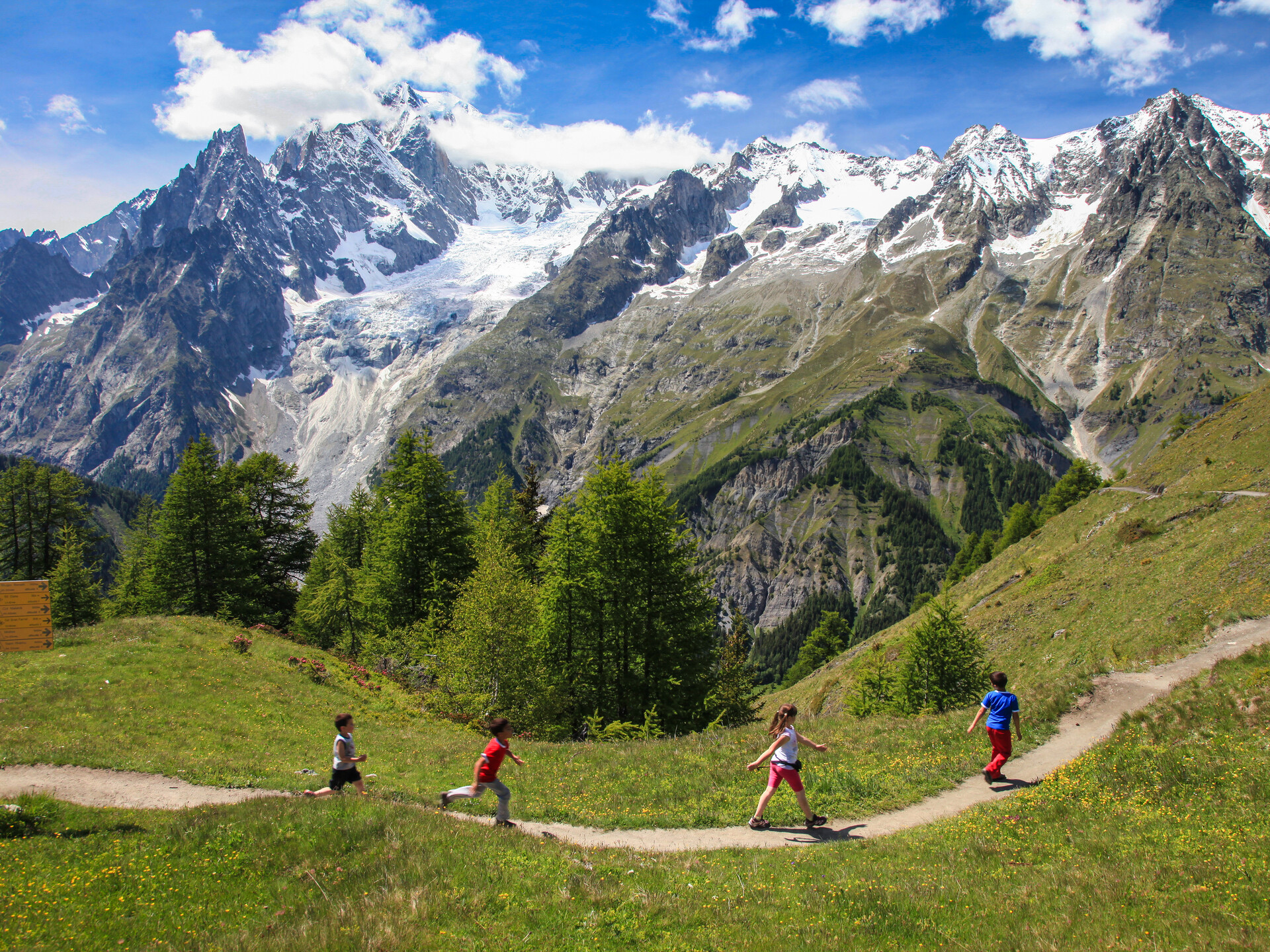 Le chef-lieu et ses hameaux disposent également de différents terrains de jeux, dont l'aire de jeux "Skyway for kids" qu'on peut rejoindre avec le téléphérique Skyway Monte Bianco. À Courmayeur, il y a enfin un mini club sur les pistes de ski à Plan Chécrouit et une ludothèque au Courmayeur Sport Center.