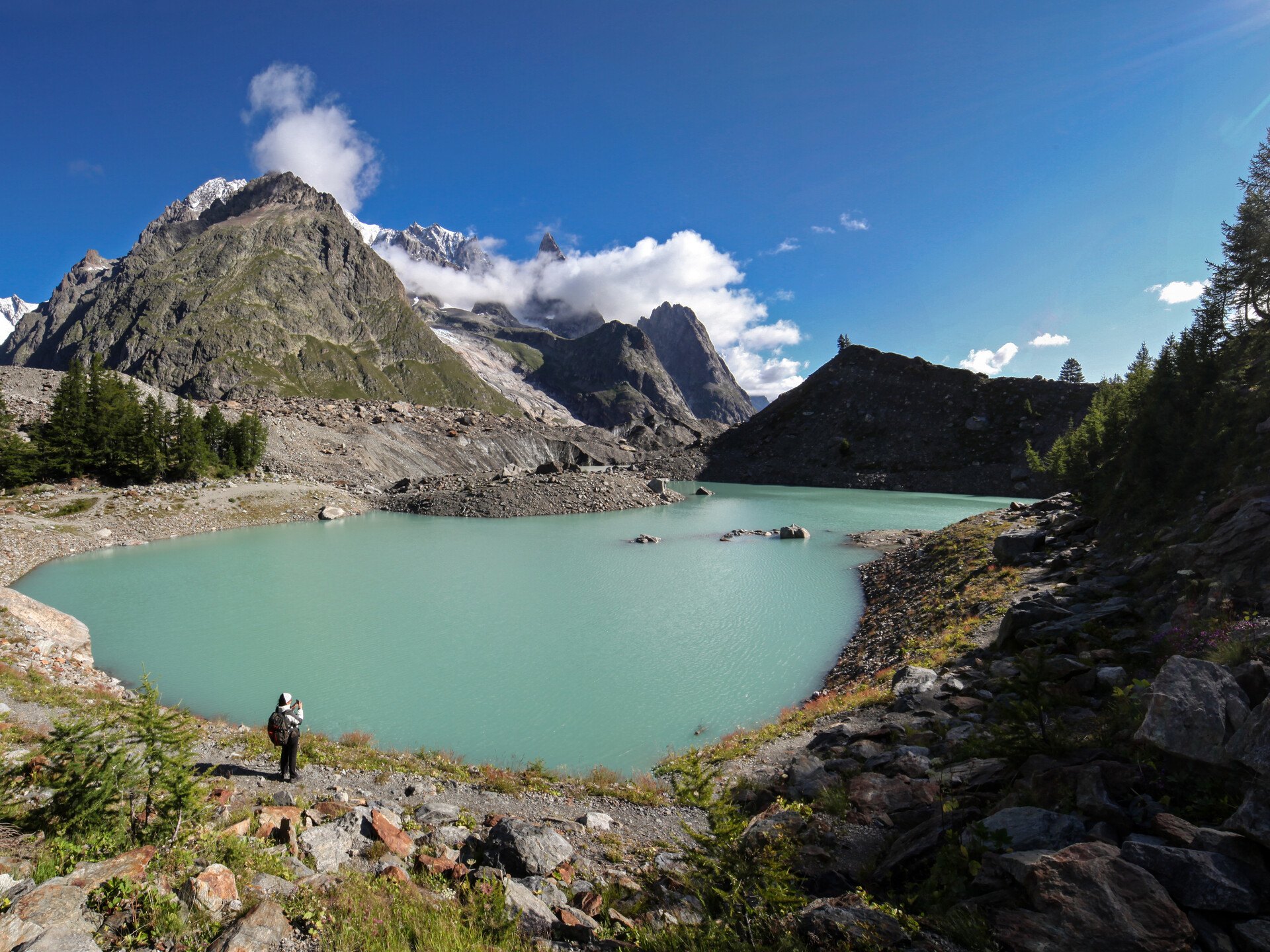 Les deux vallées latérales sont des paradis naturels et abritent des paysages différents, changeant au fil des saisons. L’été, par exemple, le Val Veny offre des paysages très variés d’Entrèves jusqu’au Col de La Seigne, à la frontière avec la Savoie. Côtoyant le glacier de la Brenva, la vallée se présente étroite, sauvage et accidentée à l’entrée, puis elle se transforme en un grand bassin en plaine. Un petit lac, le lac du Miage s’est formé sur le front du glacier, clos par sa moraine . Depuis le lac, vous pourriez observer les mouvements du glacier qui laisse parfois tomber des blocs dans l’eau, formant de petits icebergs. Même la vallée jumelle, le Val Ferret, offre des expériences inoubliables, comme marcher tout simplement ou pratiquer le ski de fond en présence des magnifiques Grandes Jorasses.