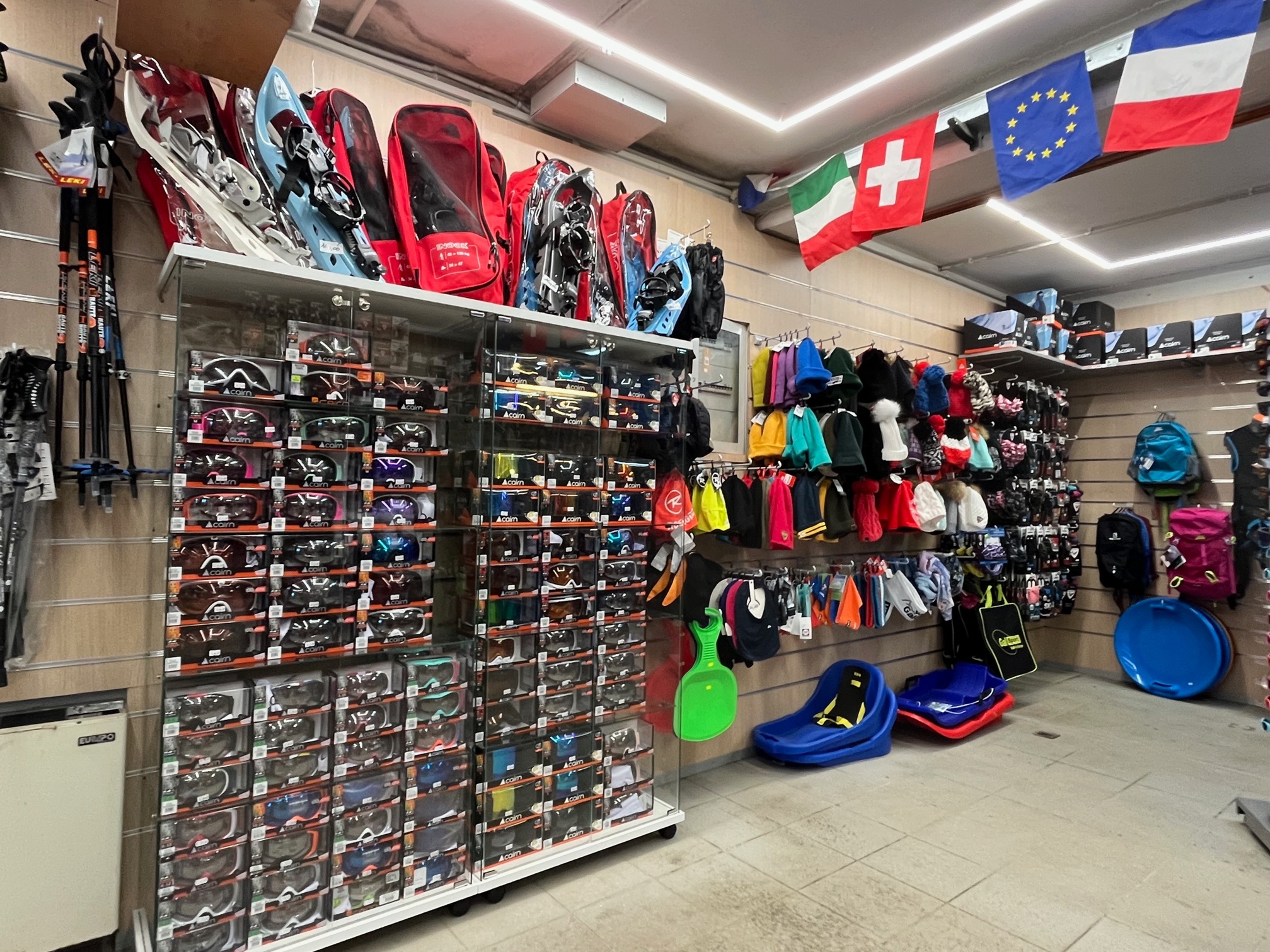 Et si vous avez oublié quelque chose, la location vend également divers accessoires tels que gants, casquettes, masques, bâtons de ski, chaussettes, lunettes de soleil, cagoules et sous-gants, chaussons et chauffe-pieds…