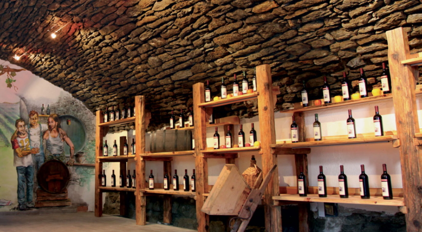 Une fois à Jovençan, il faut entrer au centre du village, monter et continuer jusqu’aux dernières maisons au sommet du village. Avant d’arriver aux vignes, on peut voir sur la gauche la cave, une maison rustique en pierre rénovée avec une façade verte.
