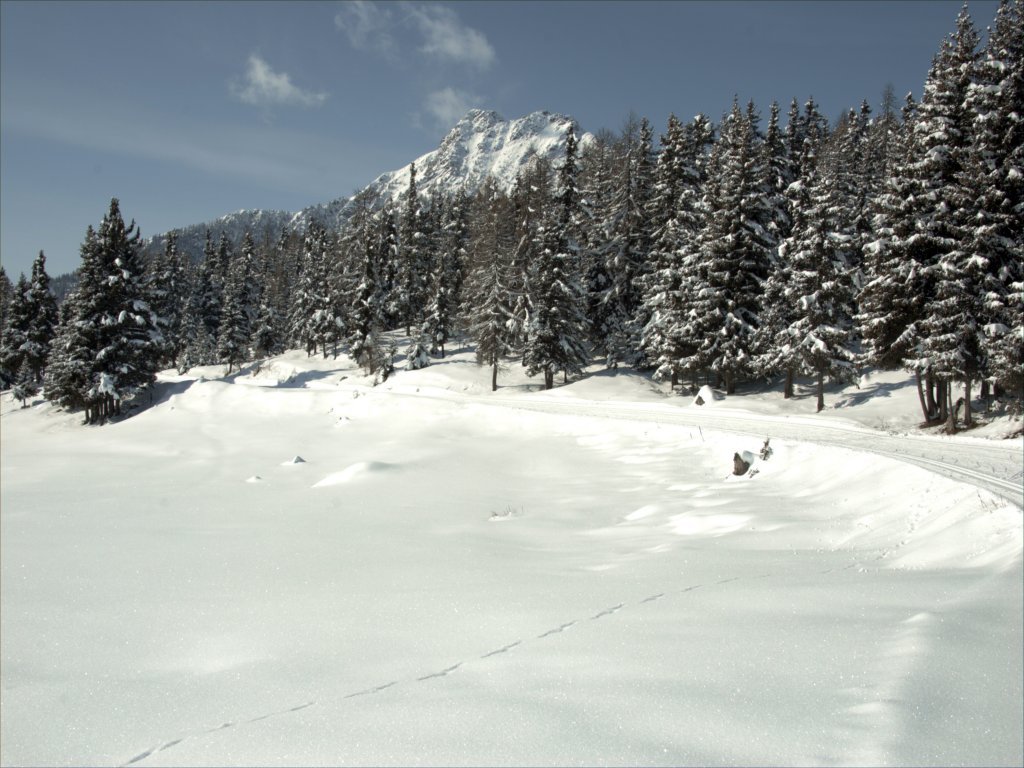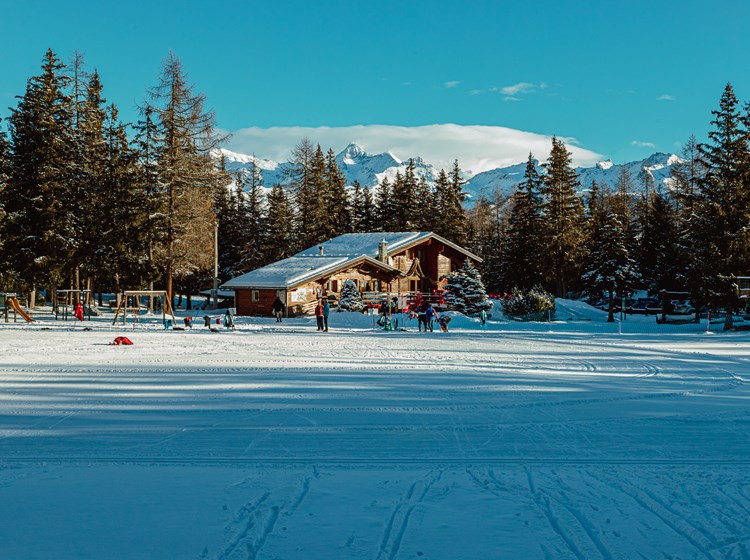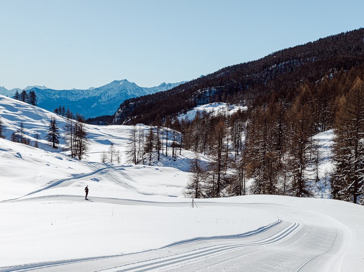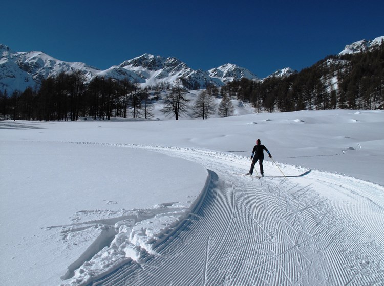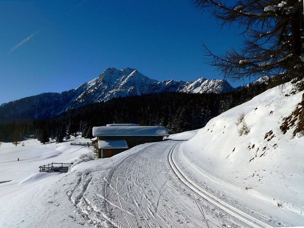 Les pistes de ski de fond de Torgnon se dénouent dans deux directions : vers le moyen Valtournenche (Grandes Montagnes) et vers le sud, en direction du col des Bornes (piste La Maisonnette).