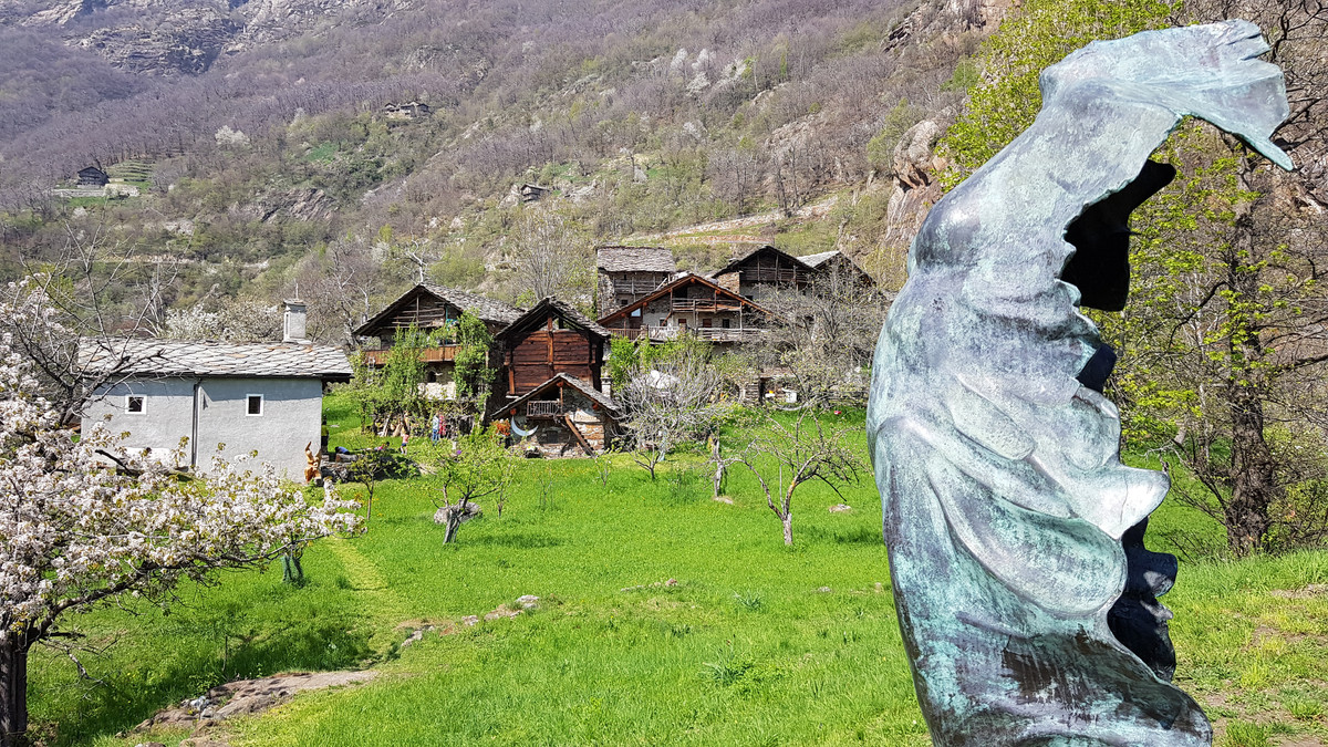 De Fontainemore, vous rejoignez de splendides villages entre de vastes et beaux sentiers sur la rive droite, notamment celui de Chemp. Un insolite et charmant musée à ciel ouvert où vous serez accueillis, entre les maisons et les granges, par les sculptures de Angelo Bettoni et d’autres artistes, les “âmes de Chemp”.