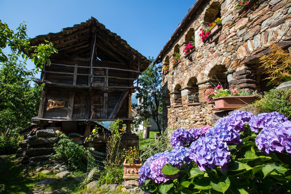 Une longue promenade sur les balcons de l’adret de Fontainemore qui mène à nouveau avec un très léger dénivelé au fond de vallée, ne s’autorisant qu’une unique déviation au village “musée” de Chemp, sur la commune de Perloz. D’ici, vous poursuivez ensuite à mi côte en descendant graduellement le long des vignobles en terrasses de Donnas.