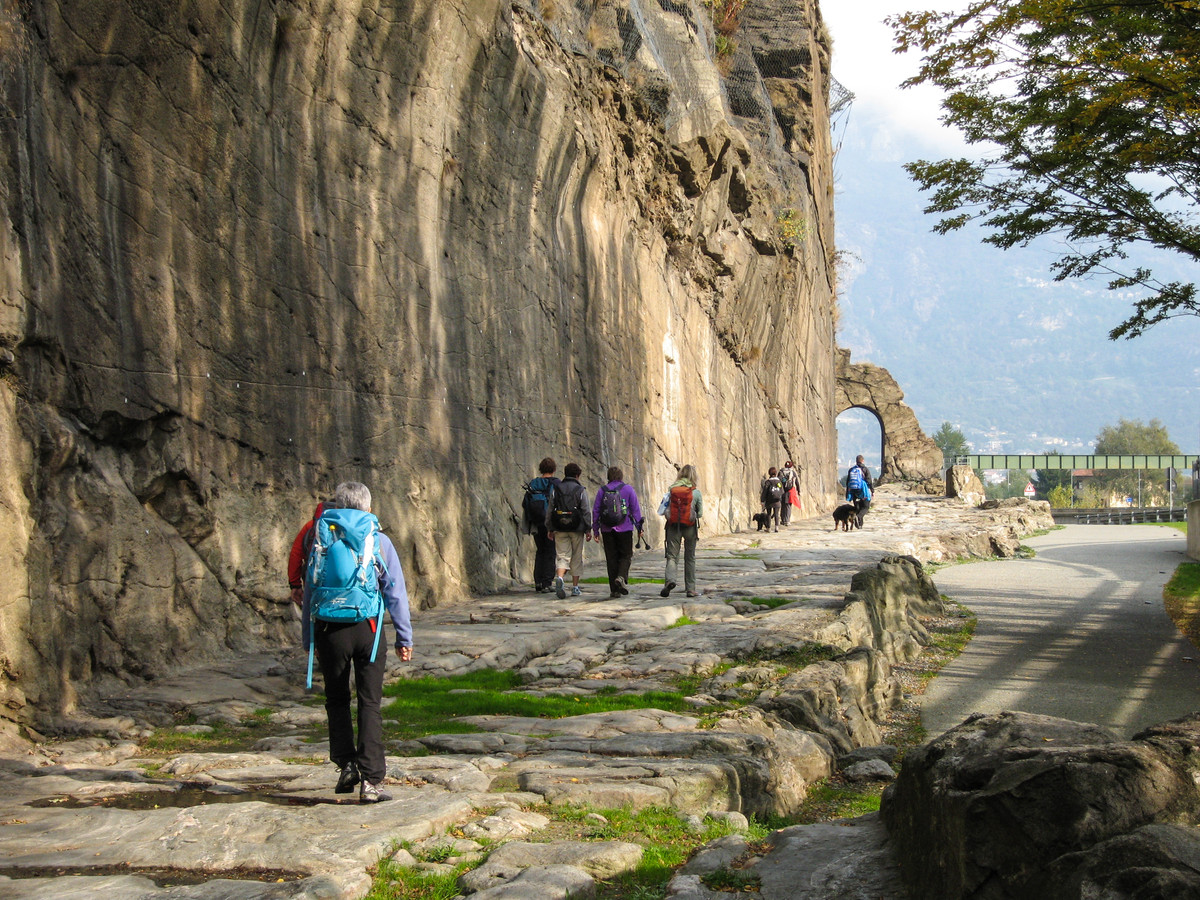 Vous rejoignez ensuite le bourg médiéval de Donnas, né sur l’ancien itinéraire de la route romaine des Gaules. C’est ici son tronçon le plus connu et le plus spectaculaire.