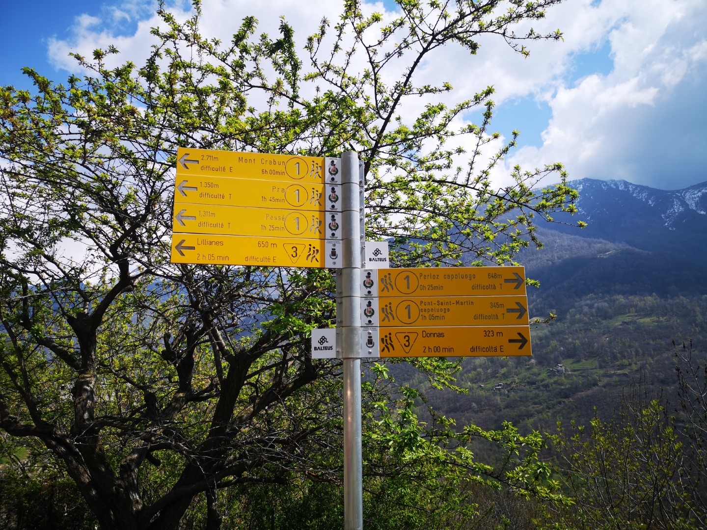 N.B.: En raison d’un tronçon de sentier non praticable, le parcours entre Fontainemore et Lilianes est dévié sur la route régionale. En annexe, les horaires des bus.
