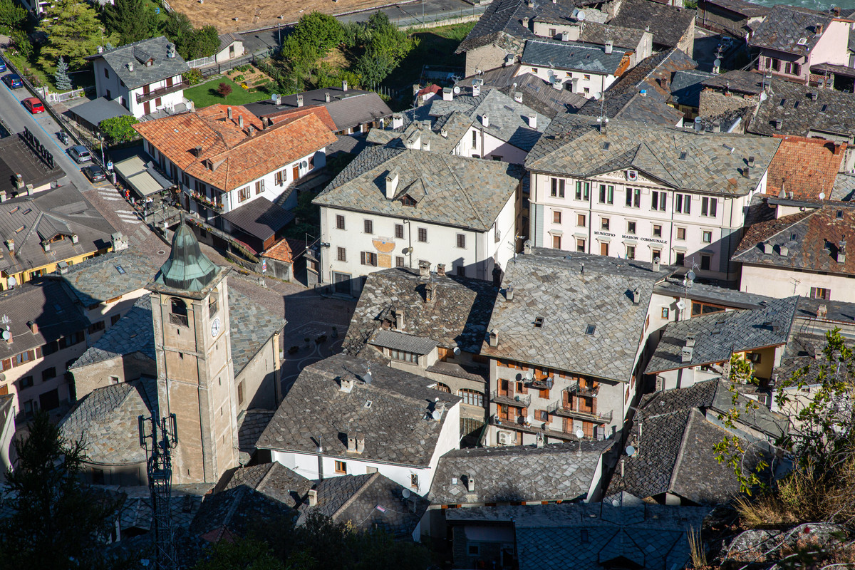 Depuis Introd montez en suivant un ancien sentier qui s’enfonce progressivement dans les bois profonds suspendus au-dessus de la turbulente Doire de Rhêmes jusqu’à atteindre, justement Rhêmes-Saint-Georges, dont les maisons courent les unes après les autres le long d’une pente dominée par la pointe de l’église paroissiale.
