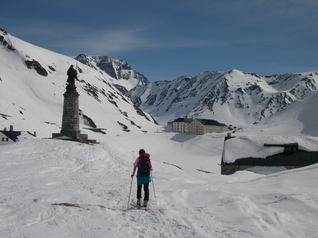 En 1045, saint Bernard de Menthon fit construire sur le col un hospice géré par une congrégation de chanoines réguliers en vue de soigner, d’assister et de protéger les nombreux voyageurs, notamment les pèlerins qui parcourraient la Via Francigena.