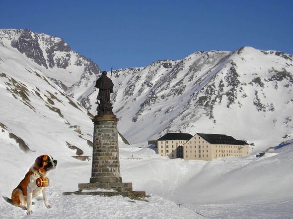 À partir du XVIème siècle au moins, les chanoines de l’hospice élevèrent des gros chiens molosses pour garder et protéger l’hospice, mais aussi pour de nombreuses autres fonctions. Qu’est-ce qui les rendit célèbres dans le monde entier ? Le fait d’aider les moines à tracer la piste dans la neige fraîche, à prévoir la chute d’avalanches et à retrouver les voyageurs égarés avec le mauvais temps ou carrément ensevelis par une coulée de neige. Dès le dix-neuvième siècle, on sélectionna parmi ces chiens la race que l’on connaît aujourd’hui sous le nom de Chien Saint-Bernard.